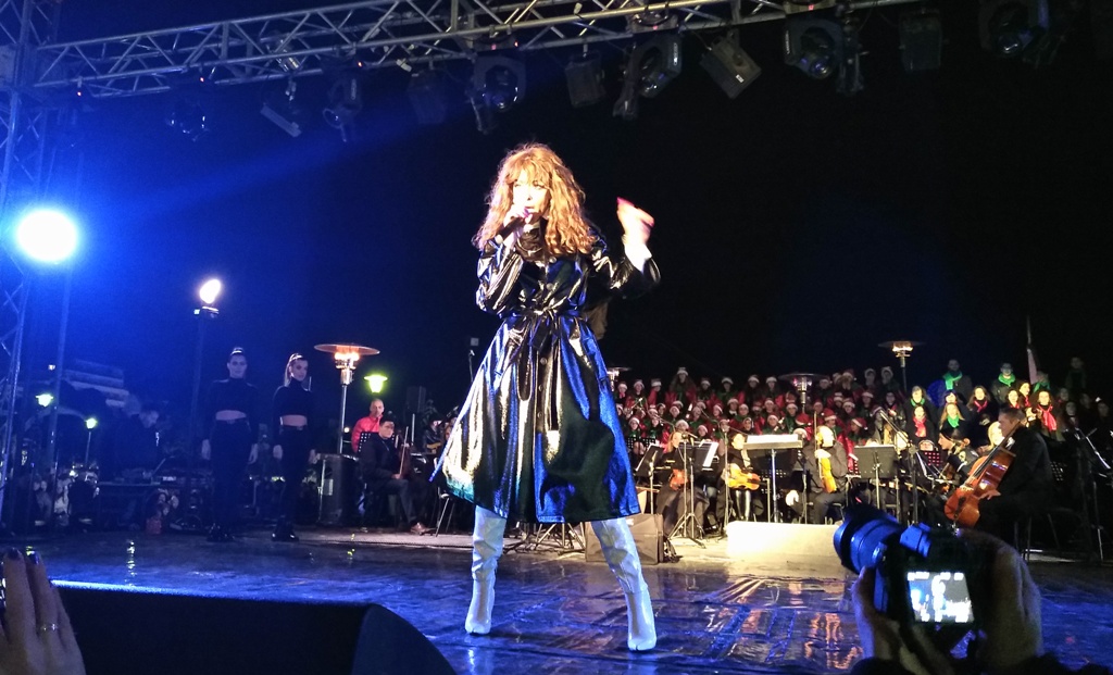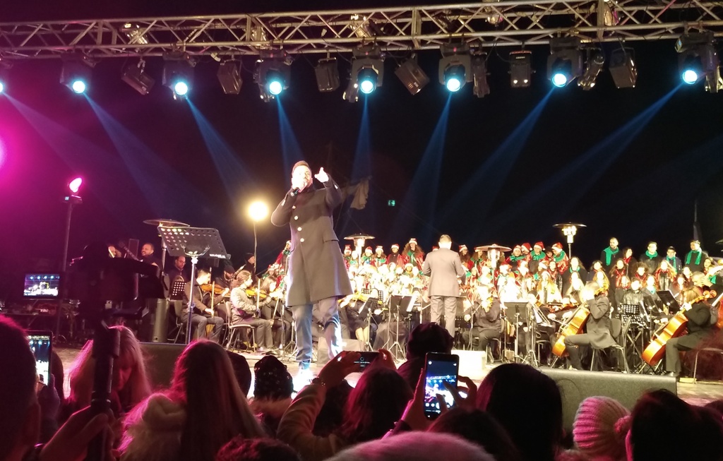 Για το άναμμα του δένδρου και την έναρξη των εκδηλώσεων, εκτός του Δημάρχου και των δύο καλλιτεχνών, στη σκηνή ανέβηκαν ο παγκόσμιος πρωταθλητής πόλο εφήβων Σταύρος Μανθογιάννης και η νεαρή πρωταγωνίστρια του χριστουγεννιάτικου τρέιλερ, Μάρω.