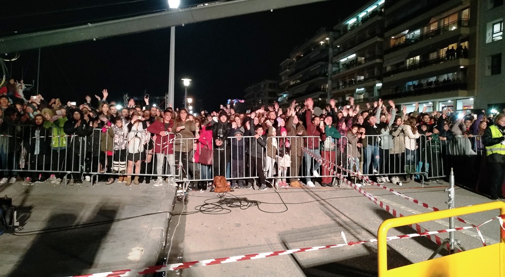 Χιλιάδες Βολιώτες και Βολιώτισσες αψήφησαν το τσουχτερό κρύο και διασκέδασαν με τους προσκεκλημένους καλλιτέχνες του Δήμου Βόλου, Κώστα Αργυρό και Ελένη Φουρέιρα, στην τελετή φωταγώγησης της πόλης, απόψε στην παραλία του Βόλου, ενώ ακολούθησε η καθιερωμένη πορεία μέχρι το χωριό του Άγιου Βασίλη στην Πλατεία Ρήγα Φεραίου.