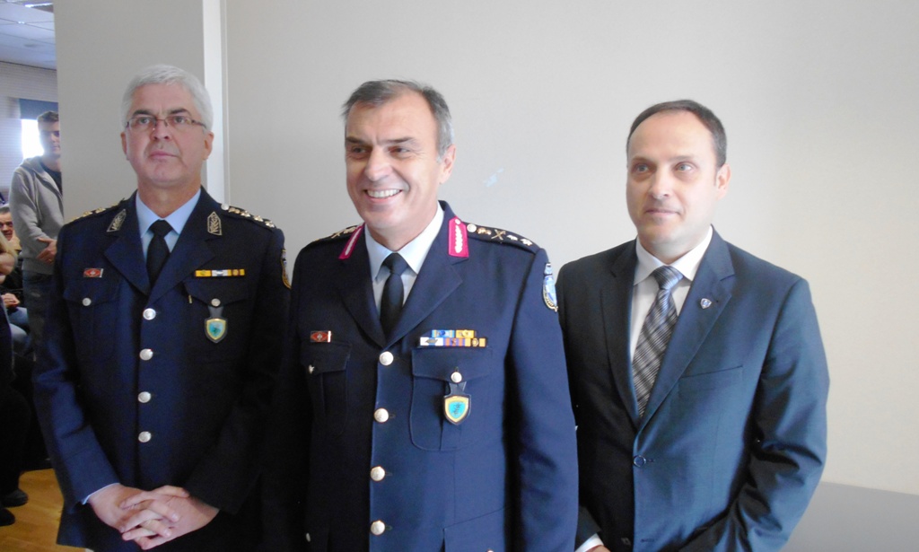 Ο υποστράτηγος συνεχάρη τον κ. Μαρκογιαννάκη που παραμένει στο βαθμό του και τους νέους αστυνομικούς διευθυντές Βασίλη Καραΐσκο και Μίλτο Αλεξάκη, ενώ ευχαρίστησε το προσωπικό για τη στήριξη στο έργο που έγινε.