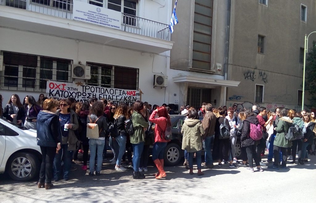 Ο διευθυντής της Α’Βάθμιας Διεύθυνσης Μαγνησίας Γιώργος Πολύζος δήλωσε ότι ο αγώνας κάθε κοινωνικής ομάδας είναι σεβαστός «από κει και πέρα όμως η υπηρεσία μας είναι για δεύτερο 24ωρο κλειστή. Χθες καταφέραμε στις 2 το μεσημέρι που έληξε η κατάληψη να μπούμε και να ασχοληθούμε με τρέχοντα θέματα, αλλά σήμερα είμαστε πάλι έξω, ενώ εκκρεμούν σοβαρά θέματα. Σε συζήτηση που είχα με τον συντονιστή, εξήγησα ότι πρέπει να λειτουργήσει η υπηρεσία». Ο ίδιος είπε ότι έκανε έκκληση στους φοιτητές αύριο Πέμπτη να μπούμε στα γραφεία και να λειτουργήσει η υπηρεσία απρόσκοπτα γιατί δεν υπάρχει επαφή με τα σχολεία.