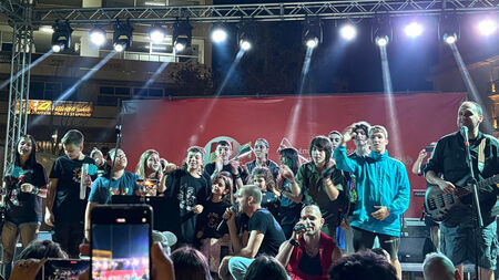 Νωρίτερα, το συγκρότημα βρέθηκε στο μαθητικό στέκι που λειτουργούσε στο χώρο του Φεστιβάλ, συνομίλησε και απάντησε σε ερωτήσεις μαθητών γύρω από το ποια είναι η πηγή της έμπνευσης του, ποιες οι δυσκολίες που έχει να αντιμετωπίσει ένας νέος μουσικός, ποιος ο ρόλος της μουσικής και της τέχνης στην πάλη ενάντια στο σύστημα της εκμετάλλευσης και των πολέμων κ.α.