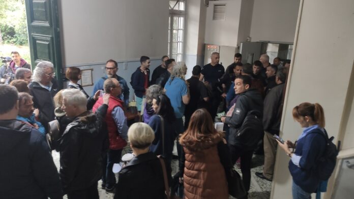Χάος επικράτησε στα Δικαστήρια του Βόλου, όπου ήταν σε εξέλιξη η δίκη Θ. Κλημόπουλου και Αρ. Φραγκουδάκη, για διατάραξη οικιακής ειρήνης και για παράνομη βία. Μετά από διακοπή η δίκη αποφασίστηκε να συνεχιστεί στις 16 Μαΐου στις 9 το πρωί.