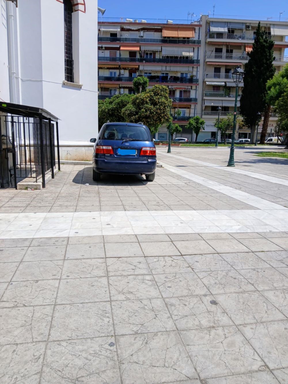 Ο οδηγός του συγκεκριμένου αυτοκινήτου μάλιστα το έβαλε πάνω στο πεζοδρόμιο της Ανθίμου Γαζή, κλείνοντάς το σχεδόν ολοκληρωτικά και αποκλείοντας την πρόσβαση σε όλους και κυρίως σε όσους χρησιμοποιούν αναπηρικό αμαξίδιο και στις μητέρες με καρότσια.