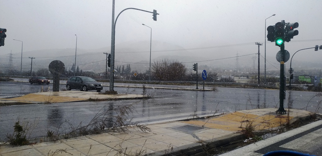 Δεκαπέντε λεπτά μετά από τη μία το μεσημέρι ξεκίνησαν οι πρώτες νιφάδες χιονιού