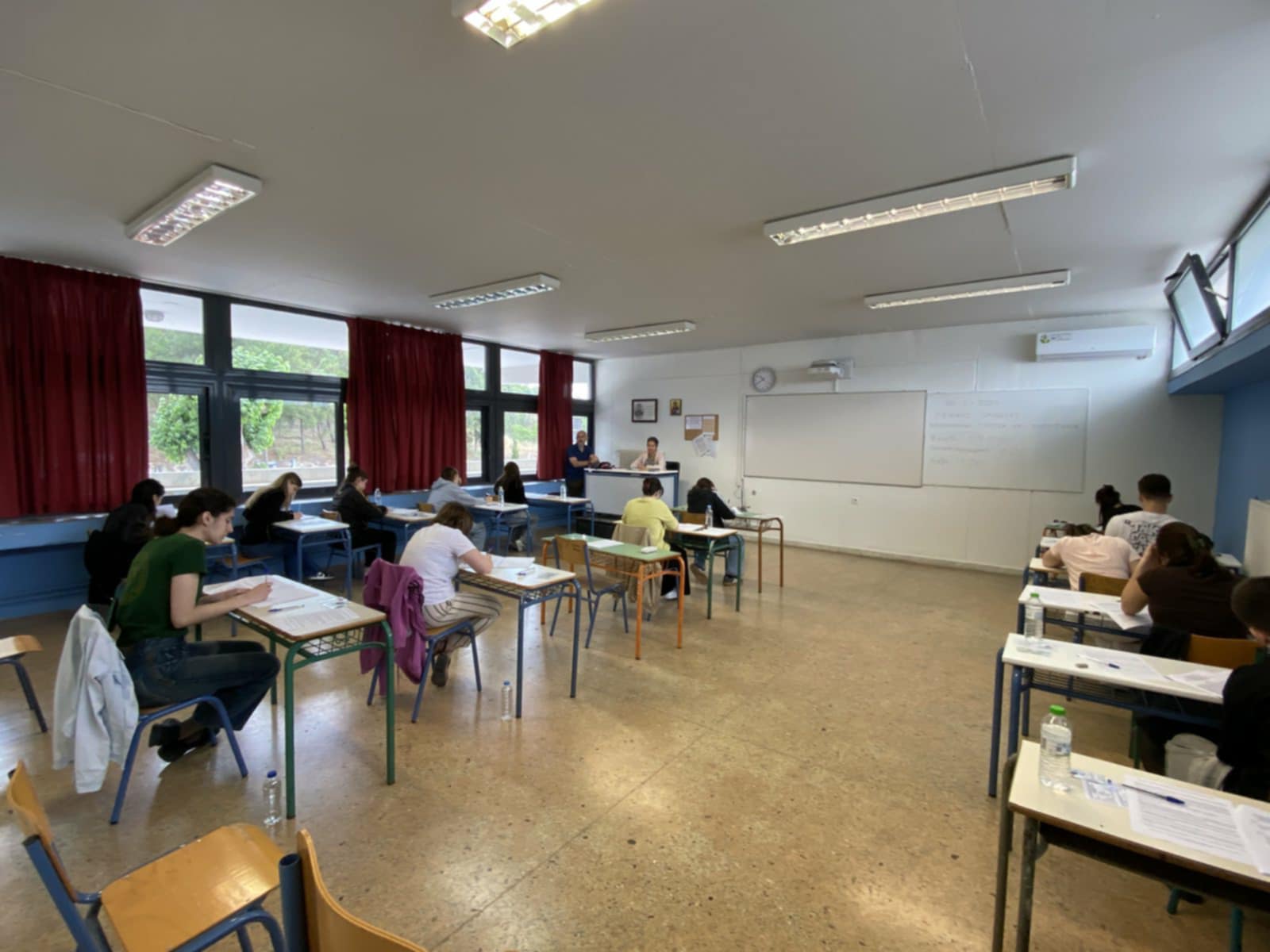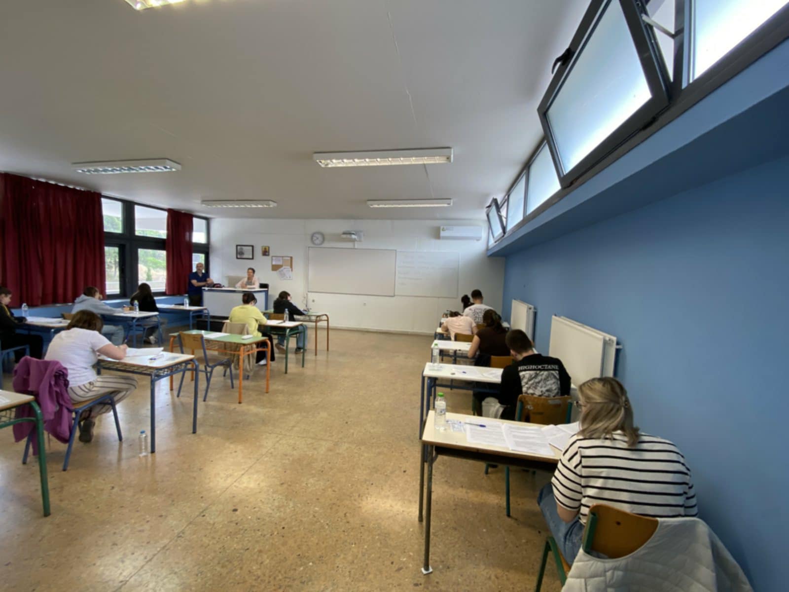 “Τα παιδιά είναι αγχωμένα, θεωρείται μία ημέρα πολύ σημαντική για την πορεία της ζωής τους, αλλά τους λέμε ότι θα ακολουθήσουν κι άλλες και η πορεία τους κρίνεται από το σύνολο της πορείας και της δουλειάς τους και όχι από μία ημέρα. Οι πανελλαδικές εξετάσεις είναι ένας θεσμός καταξιωμένος στη συνείδηση της ελληνικής κοινωνίας, γιατί οι διαδικασίες είναι αδιάβλητες. Στο Εξεταστικό μας Κέντρο έχουν οριστεί έξι μέλη της λυκειακής επιτροπής, τρεις από το δικό μας σχολείο και τρεις από άλλα σχολεία και 27 επιτηρητές από άλλα σχολεία. Τα παιδιά δεν γνωρίζουν τους επιτηρητές, σήμερα τους είδαν”, επεσήμανε.