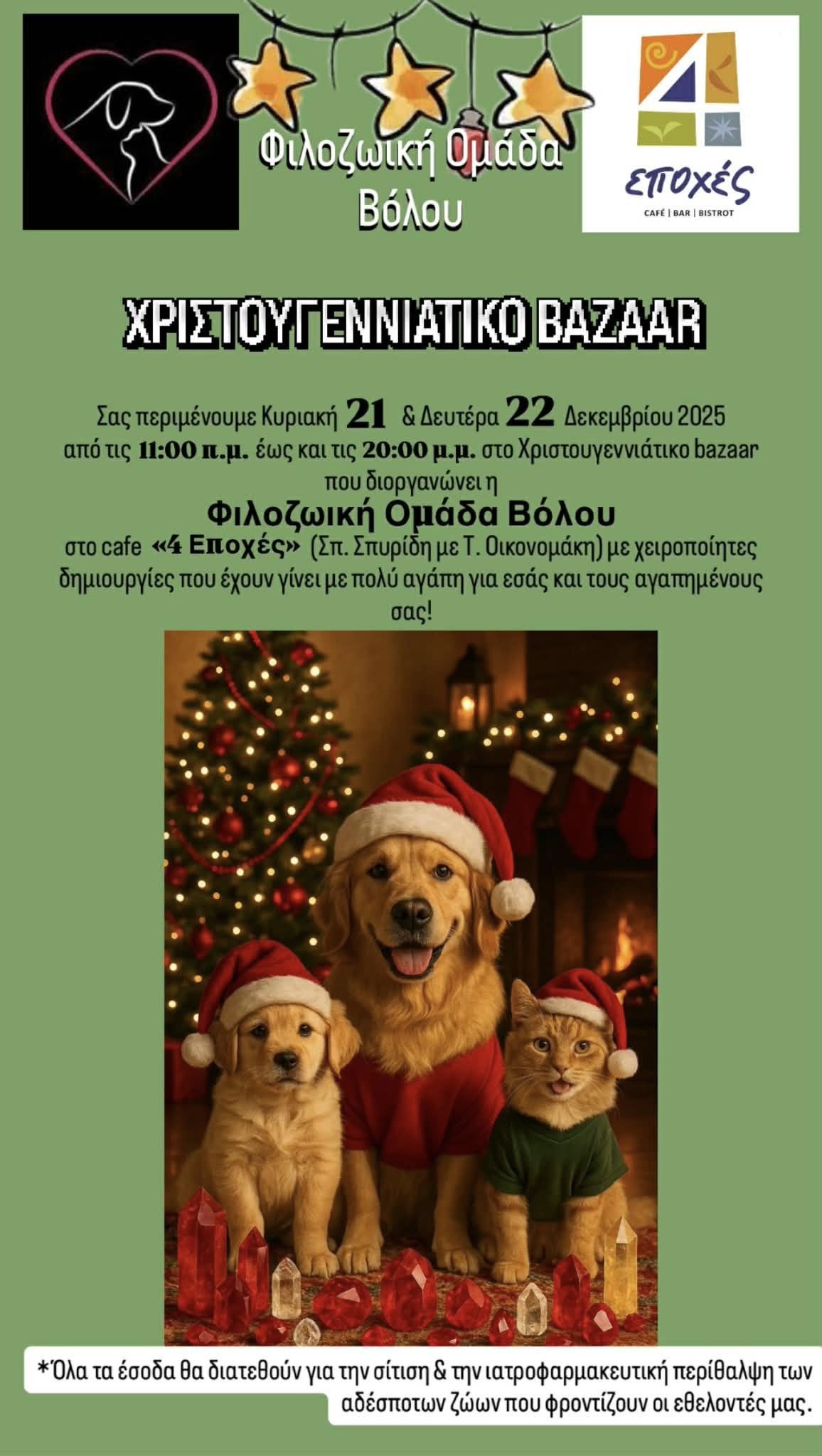 Χριστουγεννιάτικο bazaar από τη Φιλοζωική Ομάδα Βόλου για τη στήριξη των αδέσποτων