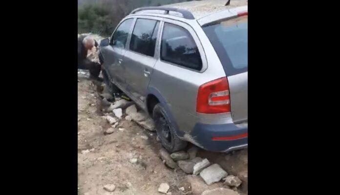 Φθάνοντας κοντά με δυσκολία καταφέραμε λίγο -λιγο με τον εργάτη να το τραβάμε 30-30 μέτρα βγάζοντας το 200 μέτρα σε καλύτερο μέρος και μετά ρυμουλκόντας το να το βγάλουμε σε καθαρό δρόμο.