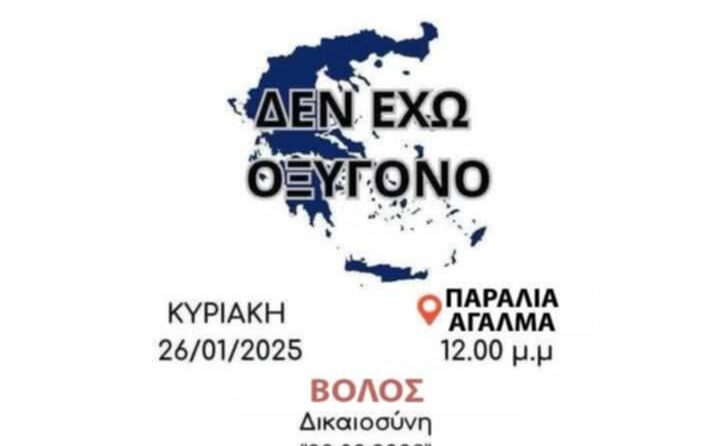 Έτσι λοιπόν ανάλογη συγκέντρωση θα πραγματοποιηθεί και στον Βόλο την Κυριακή 26 Ιανουαρίου στο Ηρώο στην παραλία στις 12 το μεσημέρι, με τους πολίτες να ενώνουν τη φωνή τους με τον Σύλλογο Πληγέντων του Δυστυχήματος των Τεμπών, όπου ζητούν «δικαιοσύνη τώρα».
