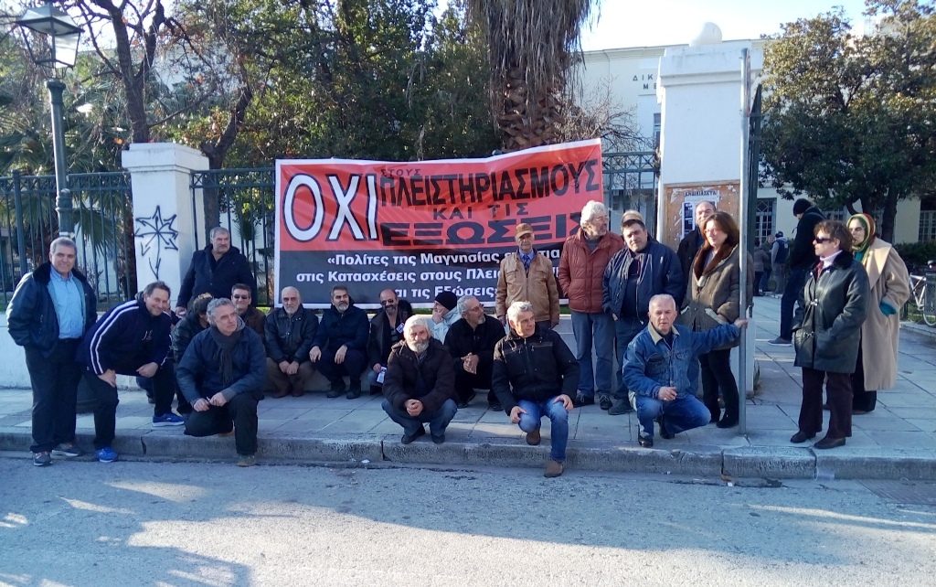 Στο χώρο των δικαστηρίων βρέθηκε ο επαγγελματίας, δεκάδες πολίτες κατά των πλειστηριασμών, κατασχέσεων και εξώσεων, όπως και άλλοι ελεύθεροι επαγγελματίες.