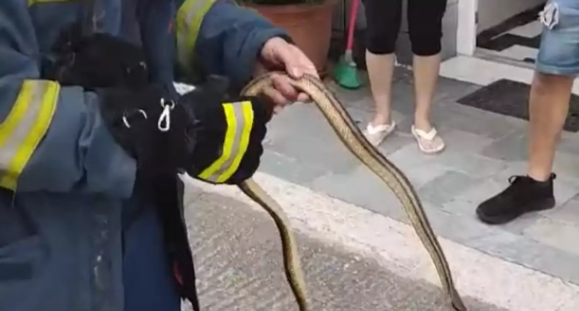 Πυροσβέστες πήγαν επί τόπου, έπιασαν το μεγάλο φίδι με εργαλεία και το απομάκρυναν στο φυσικό του περιβάλλον.