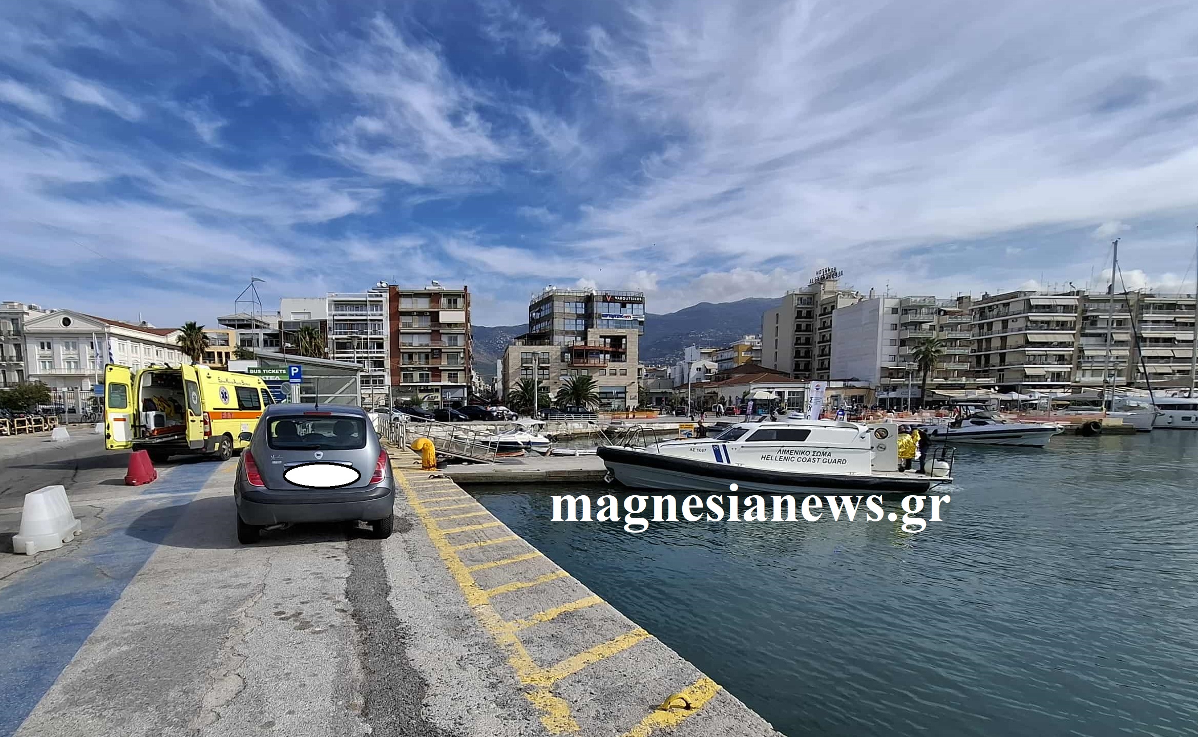 Το πλωτό ασθενοφόρο τον παρέλαβε και τον μετέφερε πριν λίγα λεπτά στο λιμάνι του Βόλου, όπου ασθενοφόρο του ΕΚΑΒ ανέμενε στο σημείο για να τον μεταφέρει στο Αχιλλοπούλειο.