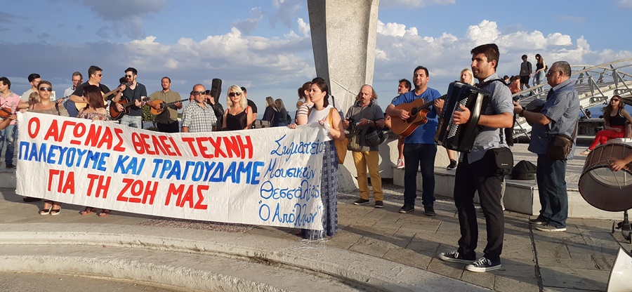 Με το σύνθημα «ο αγώνας θέλει τέχνη- παλεύουμε και τραγουδάμε για τη ζωή μας» δεκάδες μουσικοί συγκεντρώθηκαν στο Ηρώο στην παραλία του Βόλου και διαμαρτυρήθηκαν με τα μουσικής , ζητώντας ουσιαστικά μέτρα στήριξης από την πολιτεία.