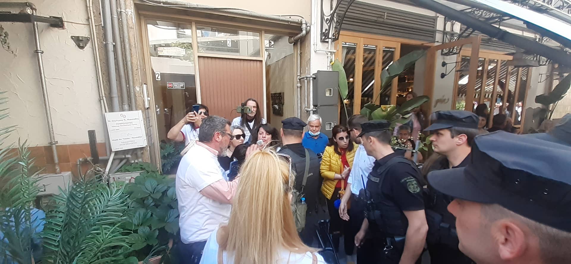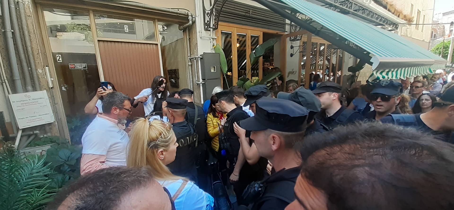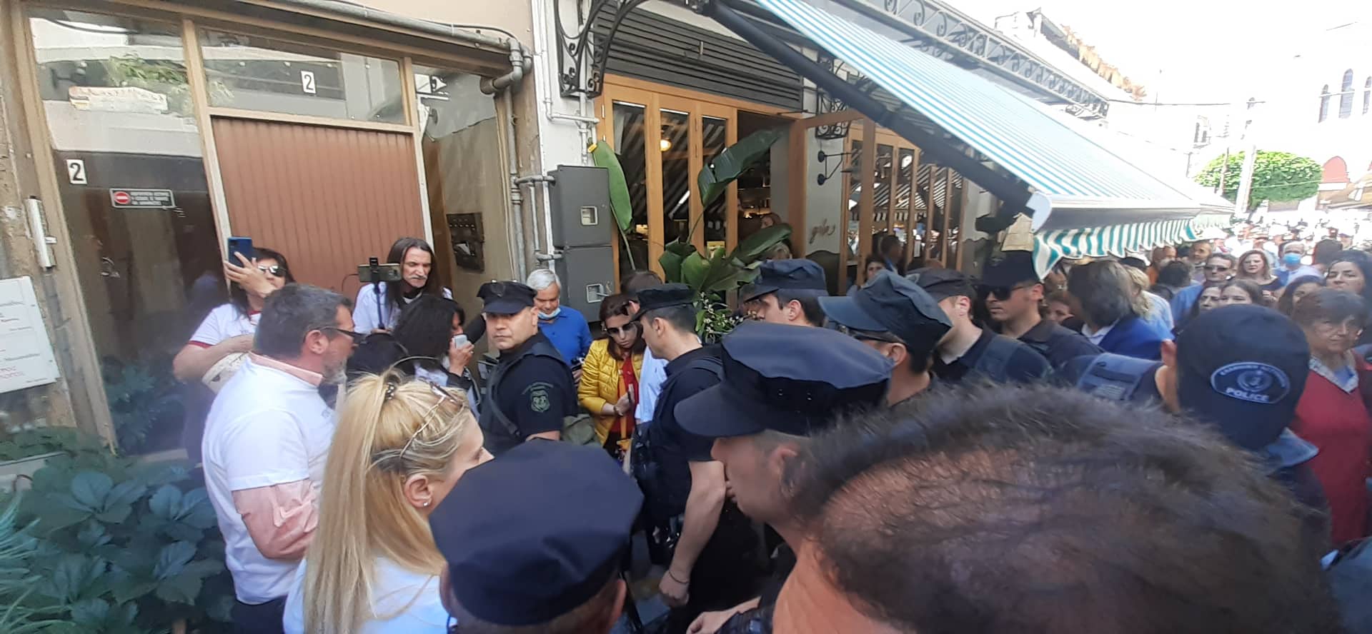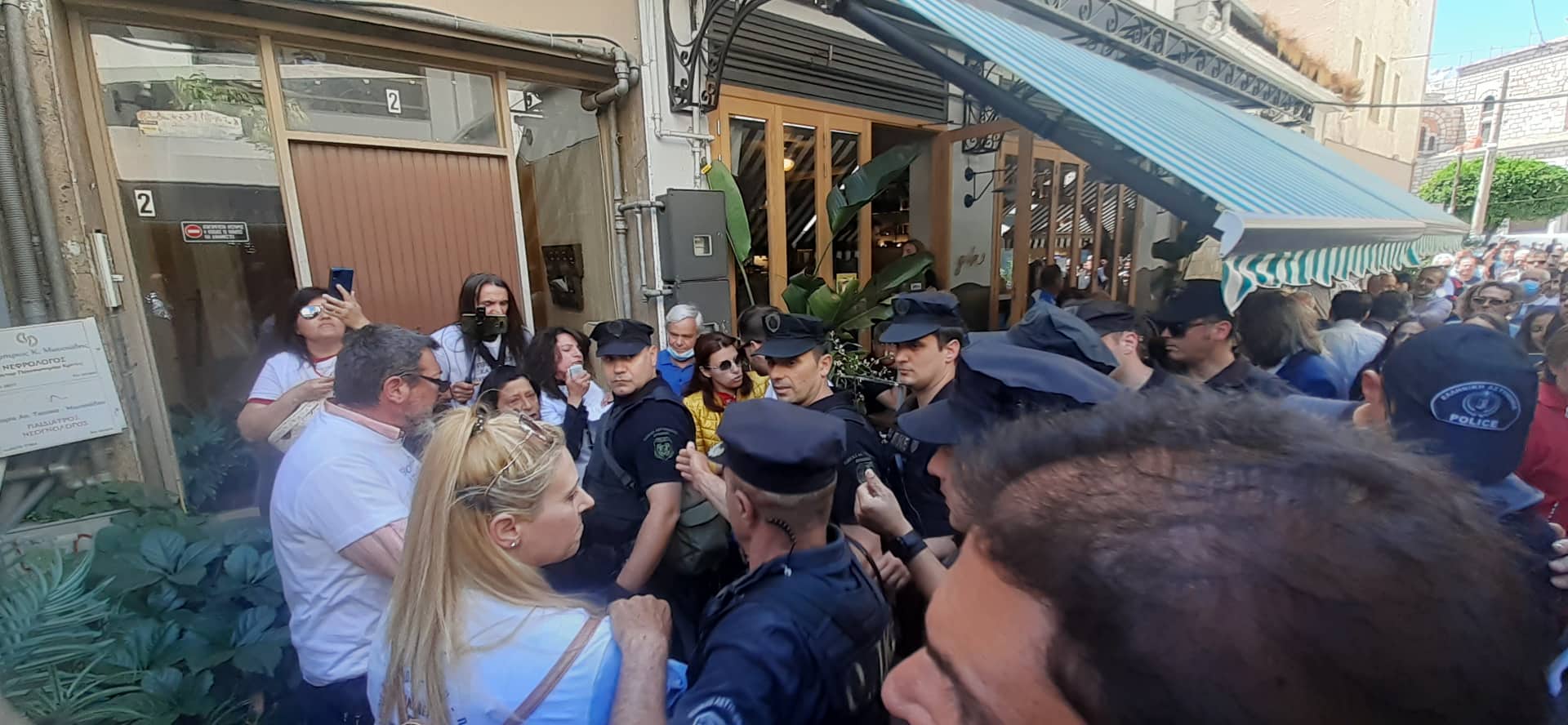 Σε διαμαρτυρία προχώρησαν οι Υγειονομικοί που τίθενται κατά της υποχρεωτικότητας έξω από το κατάστημα Grappa στο οποίο αναμένεται να φτάσει ο Πρωθυπουργός σε λίγα λεπτά. Οι Υγειονομικοί τελικά αποχώρησαν ησύχως μετά από παράκληση ανδρών της ΟΠΚΕ, αφού φώναξαν συνθήματα.