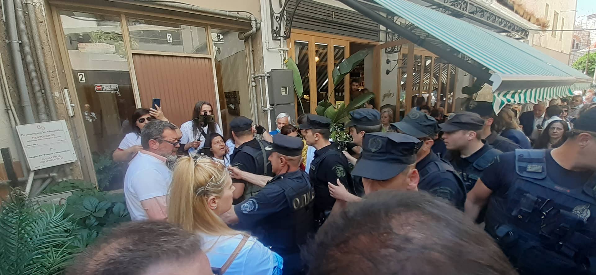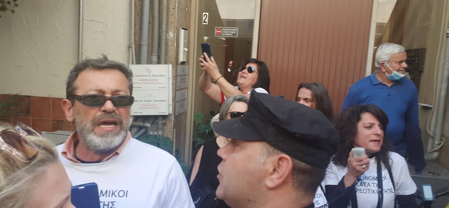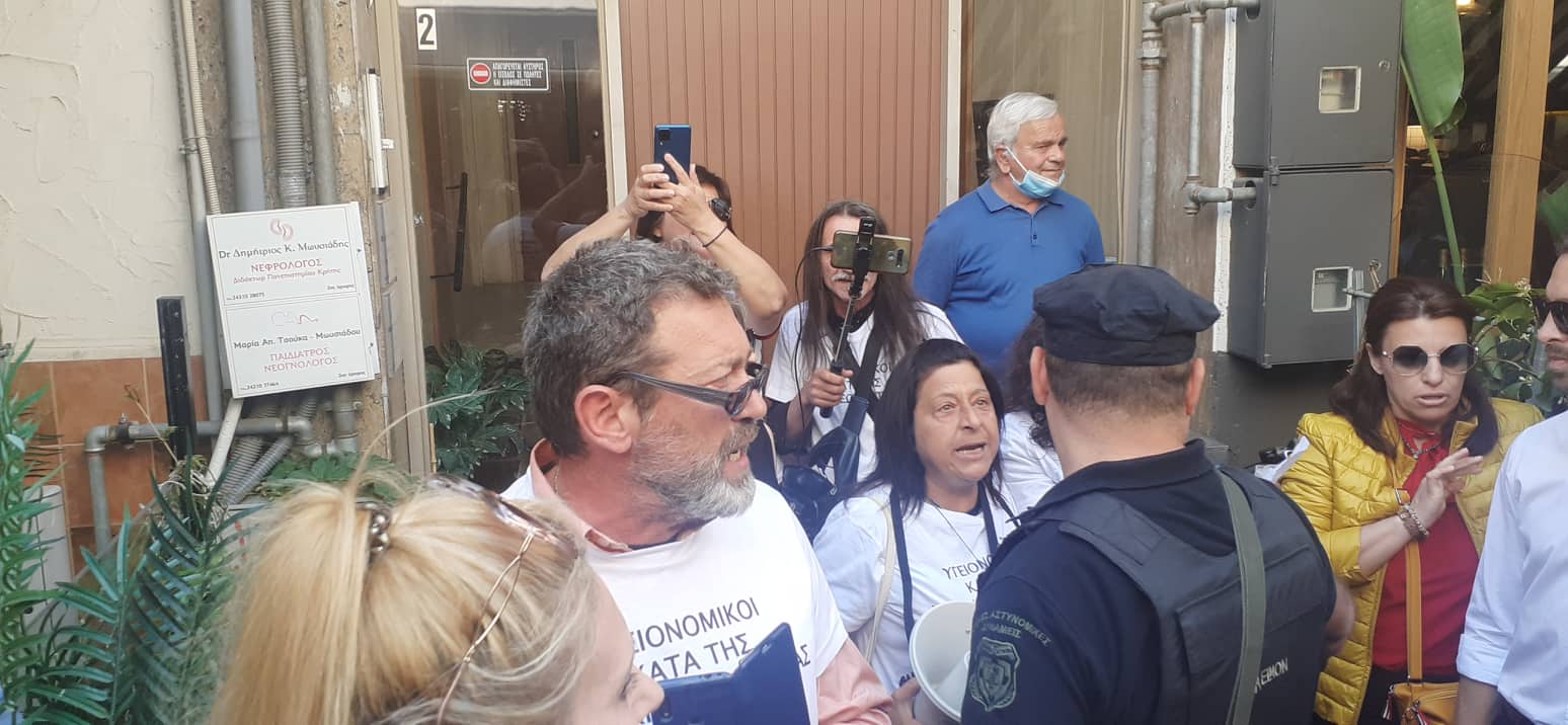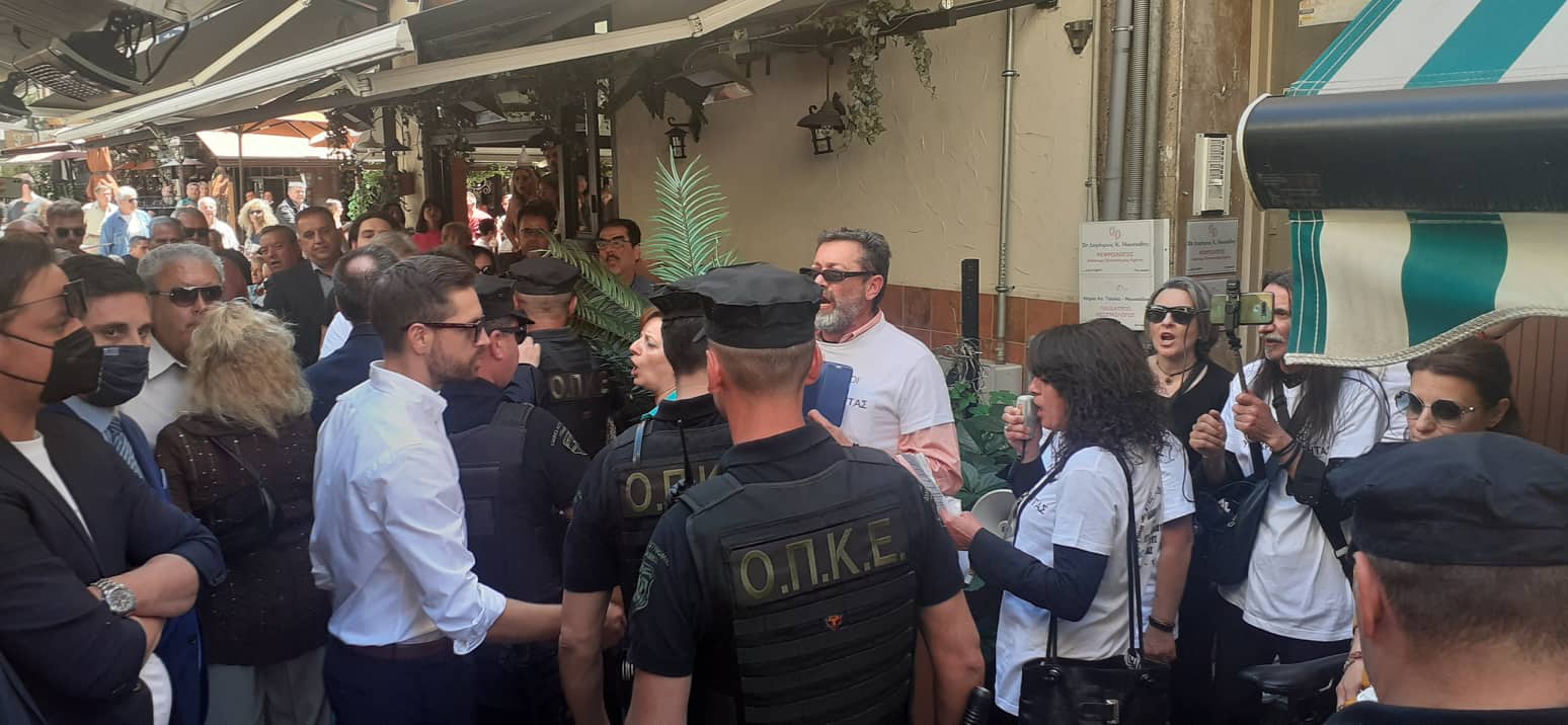 Σε διαμαρτυρία προχώρησαν οι Υγειονομικοί που τίθενται κατά της υποχρεωτικότητας έξω από το κατάστημα Grappa στο οποίο αναμένεται να φτάσει ο Πρωθυπουργός σε λίγα λεπτά. Οι Υγειονομικοί τελικά αποχώρησαν ησύχως μετά από παράκληση ανδρών της ΟΠΚΕ, αφού φώναξαν συνθήματα.