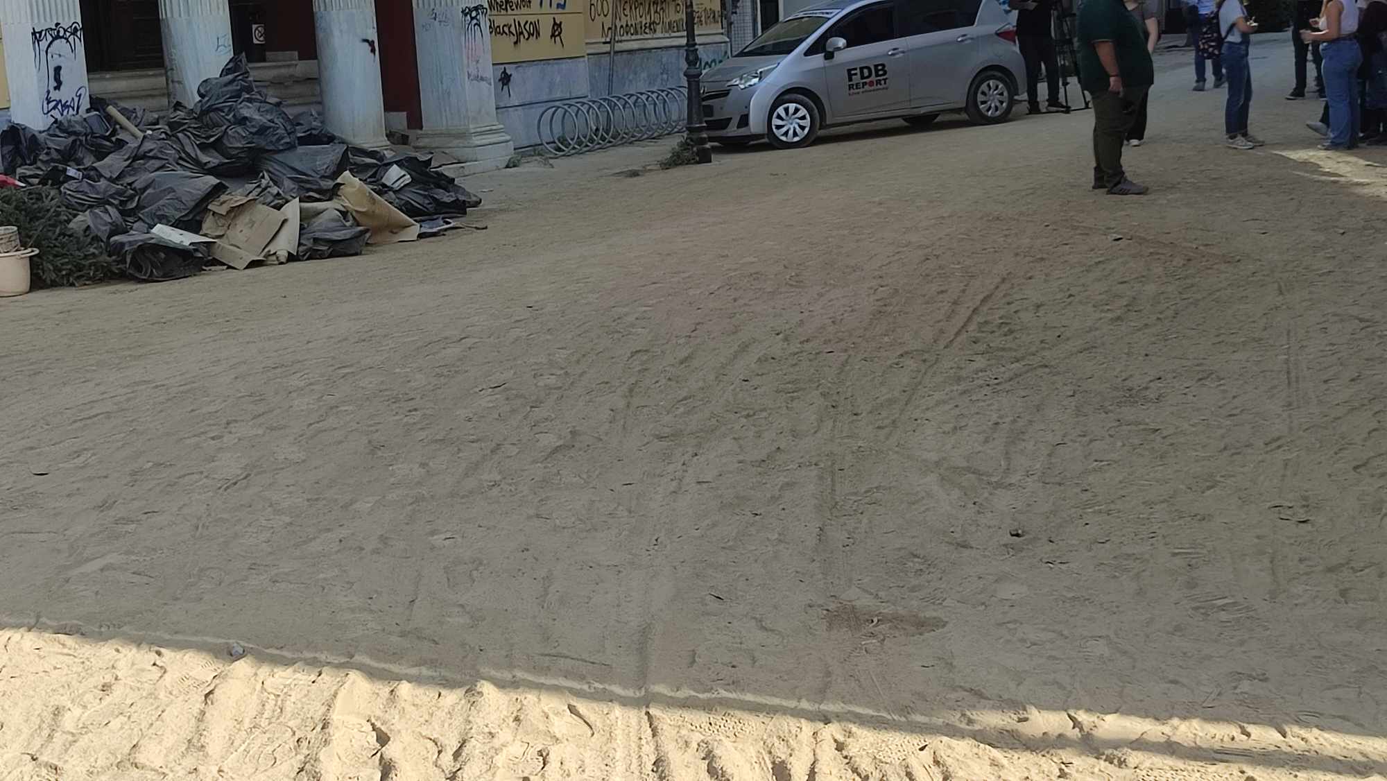 Όσον αφορά την κατάσταση έξω από το κτήριο της Βιβλιοθήκης του Πανεπιστημίου; Μόνο στον πεζόδρομο αυτήν τη στιγμή έχει τουλάχιστον 5 πόντους ποταμίσιας άμμου, που δημιουργεί σύννεφο σκόνης και χρήζει άμεσου και ουσιαστικού καθαρισμού…
