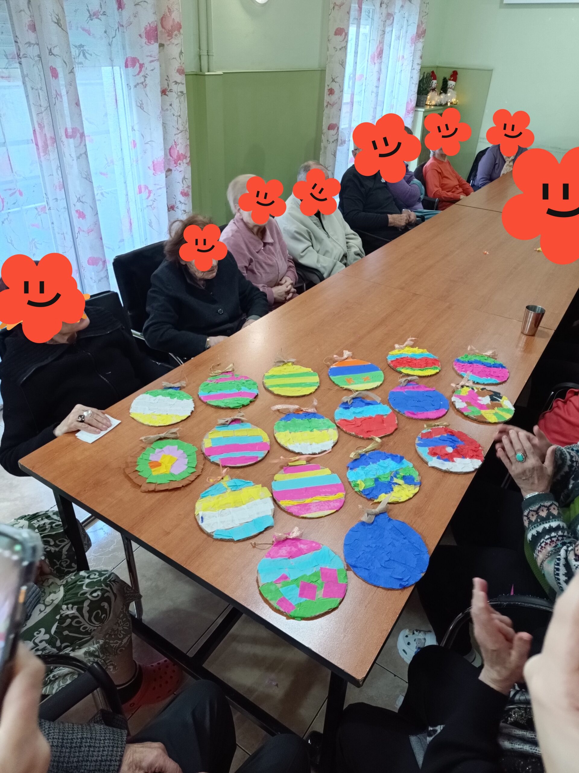 Στη συνέχεια, τραγούδησαν και χόρεψαν σε μία μεγάλη παρέα με τα πρόσωπα γεμάτα χαμόγελα και κέφι. Παράλληλα, δόθηκαν δύο χειροποίητα στολίδια, που κατασκεύασαν οι ωφελούμενοι του ΚΗΦΗ Αγριάς, προκειμένου να τοποθετηθούν στο χριστουγεννιάτικο δέντρο της Μονάδας, ως ένδειξη αλληλεγγύης.