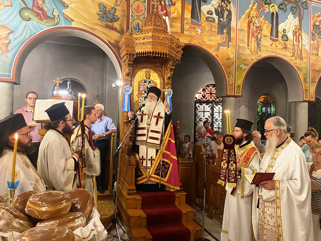 Στον πανηγυρίζοντα Ιερό Ναό Αγίου Εθνοϊερομάρτυρος Κοσμά του Αιτωλού, του Ισαποστόλου χοροστάτησε σήμερα 23/8, ο Σεβ. Μητροπολίτης Δημητριάδος κ. Ιγνάτιος, παρουσία ικανού εκκλησιάσματος.