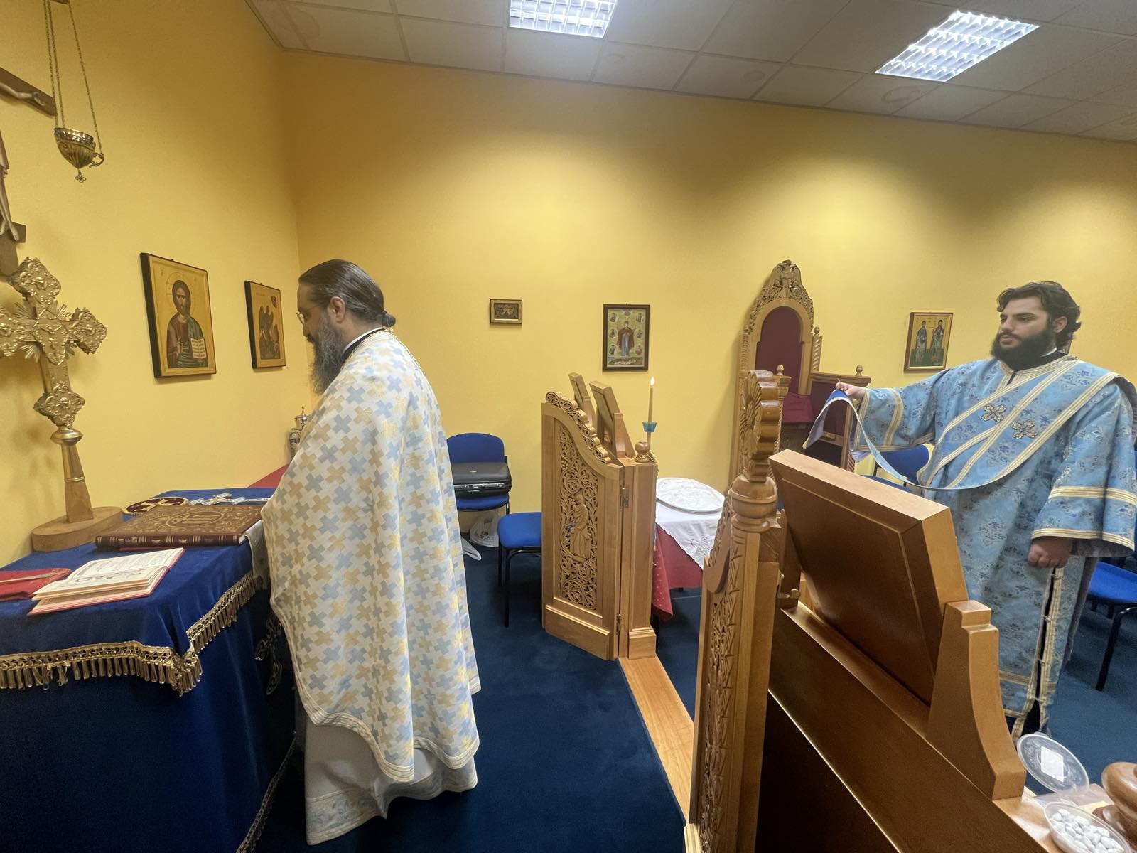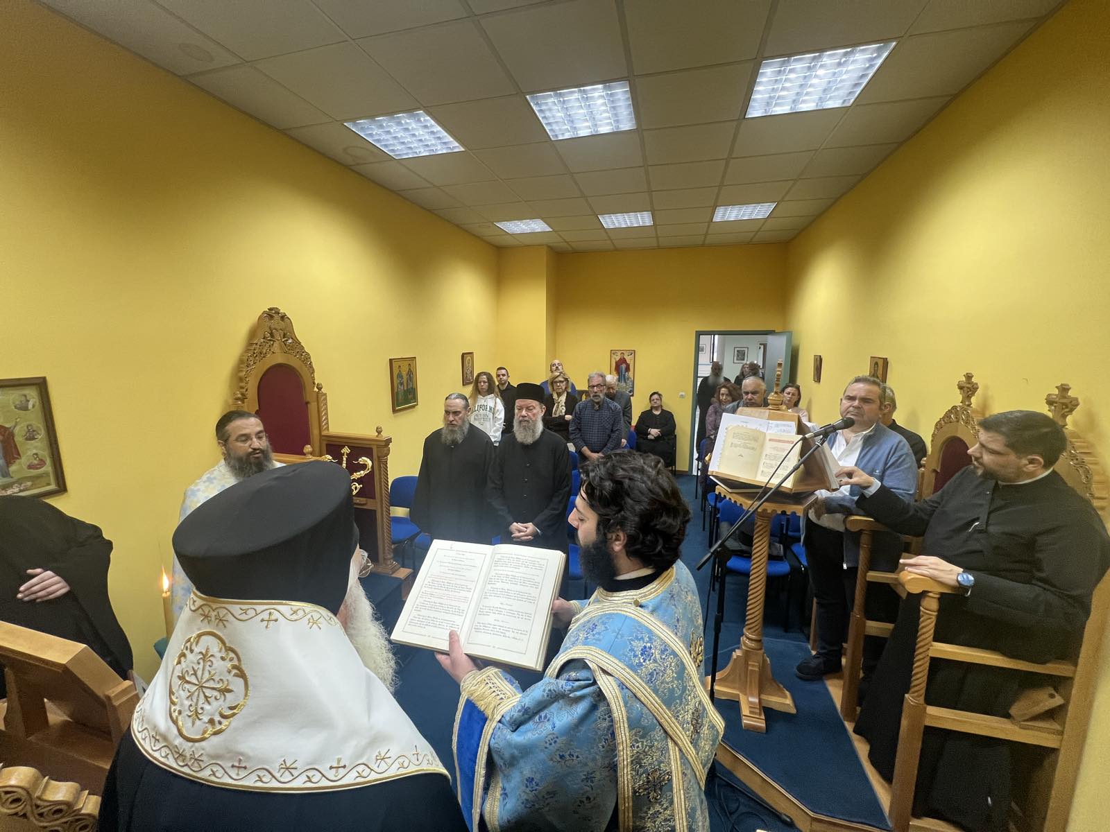 Την Ανακομιδή των ιερών Λειψάνων του Οσίου Χριστοδούλου του εν Πάτμω πανηγύρισε σήμερα το ομώνυμο ιερό Παρεκκλήσιο του Συνεδριακού Κέντρου Θεσσαλίας και τελέστηκε Θεία Λειτουργία, χοροστατούντος του Μητροπολίτη Δημητριάδος κ. Ιγνατίου, ιερουργούντος του Αρχιμ. Σεραφείμ Κοντακτσή, Προϊσταμένου του Ιερού Ναού Μεταμορφώσεως του Σωτήρος Βόλου, συμπροσευχομένων του Θεοφ. Επισκόπου Ολβίας κ. Επιφανίου και πολλών Κληρικών και λαϊκών στελεχών του Συνεδριακού Κέντρου.