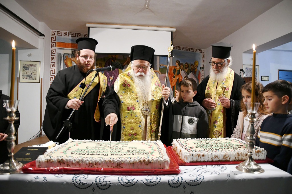 Μετά το τέλος της Θείας Λειτουργίας ο Σεβασμιώτατος ευλόγησε τη Βασιλόπιτα της Αρχιερατικής Περιφέρειας Αγιάς στο Πνευματικό Κέντρο του Ναού, όπου τα παιδιά των κατηχητικών σχολείων έψαλαν τα κάλαντα της Πρωτοχρονιάς. Στο πλαίσιο της εκδήλωσης, τίμησε τον π. Ρίζο Κομήτσα για την ανιδιοτελή διακονία του, αναφερόμενος με θερμά λόγια στον ζήλο, την ταπείνωση και τον βαθύ πόθο του για την ιερωσύνη, επισημαίνοντας ότι η πορεία του αποτελεί ζωντανή μαρτυρία αγάπης προς την Εκκλησία και τον τόπο του. Τέλος, ευχήθηκε στον Δήμαρχο Αγιάς κ. Αντώνιο Κουντάρα για την ονομαστική του εορτή, καθώς και στον Αρχιερατικό Επίτροπο Αγιάς π. Αθανάσιο Μάκρη για την αυριανή του εορτή, ευχόμενος υγεία, δύναμη και καρποφόρα διακονία.