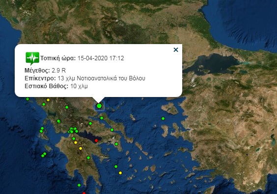 Δύο σεισμικές δονήσεις κούνησαν τη Μαγνησία, μετά τις πέντε το απόγευμα, αλλά θεωρούνται μικρής ισχύος σεισμοί. Συγκεκριμένα, σεισμική δόνηση, 2,9 Ρίχτερ σημειώθηκε στις 17:12, 13 χλμ Νοτιοανατολικά του Βόλου, με εστιακό βάθος στα 10 χλμ και έγινε αισθητή από πολλούς συμπολίτες. Λίγα λεπτά αργότερα και συγκεκριμένα στις 17.22 το απόγευμα έγινε και άλλη δόνηση μεγέθους 2.5 R, με επίκεντρο στα 9 χλμ Νότια – Νοτιοανατολικά του Βόλου και εστιακό βάθος πάλι περίπου στα 10 χλμ