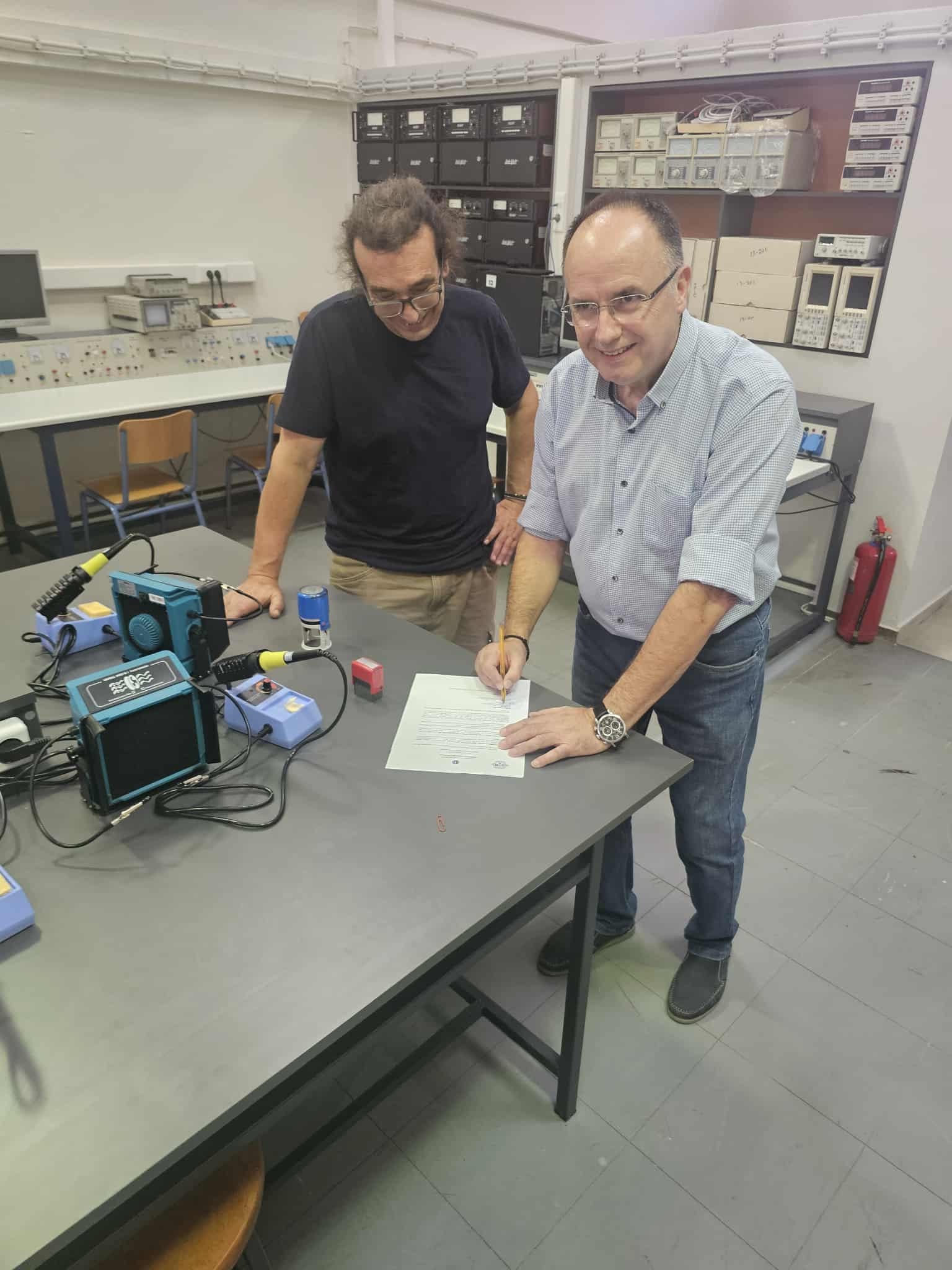 Σημειώνεται ότι κατά την παράδοση του 3D εκτυπωτή παρόντες ήταν η κ. Βούλα Γκαμπλιά, Υπεύθυνη ΓΕΜΗ του Επιμελητηρίου Μαγνησίας, ο υπεύθυνος τομέα Ηλεκτρολογίας, Ηλεκτρονικής & Αυτοματισμού κ. Κωνσταντίνος Αμυγδαλίτσης, ο Διευθυντής κ. Ιωάννης Τσοκανάκης, ο Υποδιευθυντής κ. Δημήτρης Παπαναστασίου και ο υπεύθυνος του εργαστηρίου Ηλεκτρονικών Μετρήσεων στο οποίο εγκαταστάθηκε ο εκτυπωτής, Βασίλης Μουσουλής.