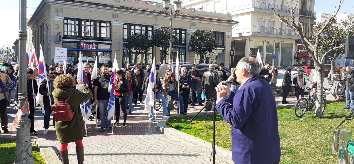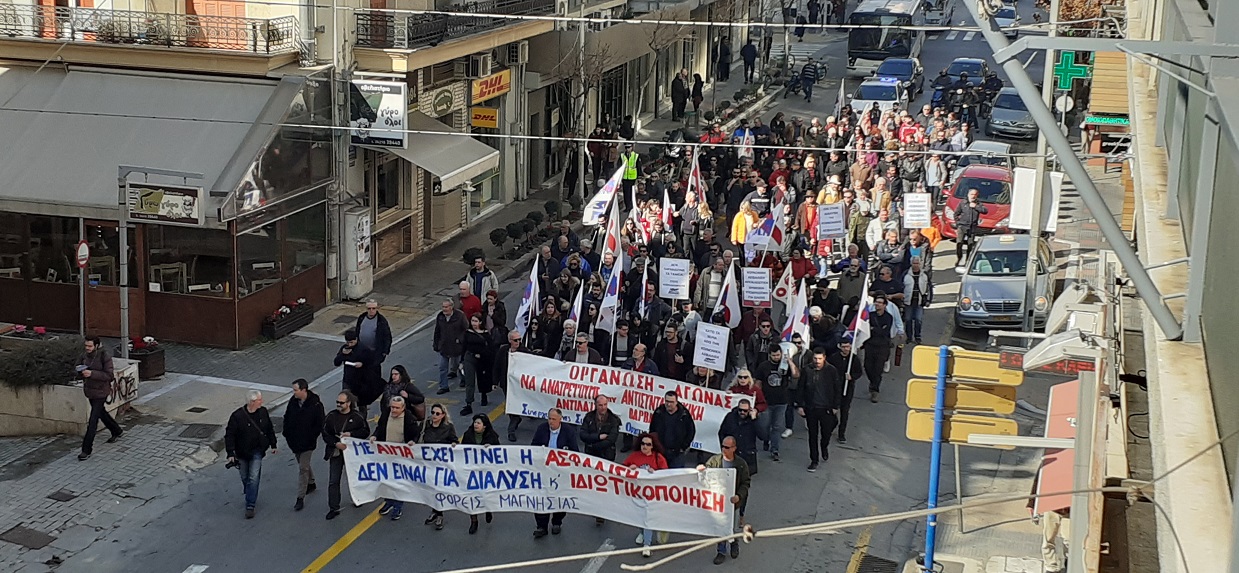 “Παρά την προσπάθεια των μηχανικών της κυβέρνησης, της εργοδοσίας στην οποία είχε καλό σύμμαχο τη συνδικαλιστική “μαφία” της ΓΣΕΕ που με χίλιους τρόπους όχι μόνο υπονόμευσε την απεργία αλλά είπε ωμά- κοφτά ότι δεν υπάρχει λόγος για απεργία και φέρνει τους εργαζόμενους σε απεργοσπασία σε πολλές πόλεις της χώρας, όπως εδώ στο Βόλο, όπου η πλειοψηφία του Εργατικού Κέντρου ΠΑΣΚΕ- ΔΑΚΕ αποφάσισε να μην κάνει απεργία για ένα τόσο καυτό ζήτημα. Τους καταγγέλλουμε. Αν νομίζουν ότι θα συνεχίσουν να αποτελούν την 5η φάλαγγα στο εργατικό κίνημα, είναι γελασμένοι. Είναι απαξιωμένοι στη συνείδηση των εργαζομένων, δεν πρόκειται να γίνει συνέδριο νοθείας και εργοδοσίας. Η ΓΣΕΕ είναι των εργατών κι όχι των εργοδοτών”, ανέφερε.