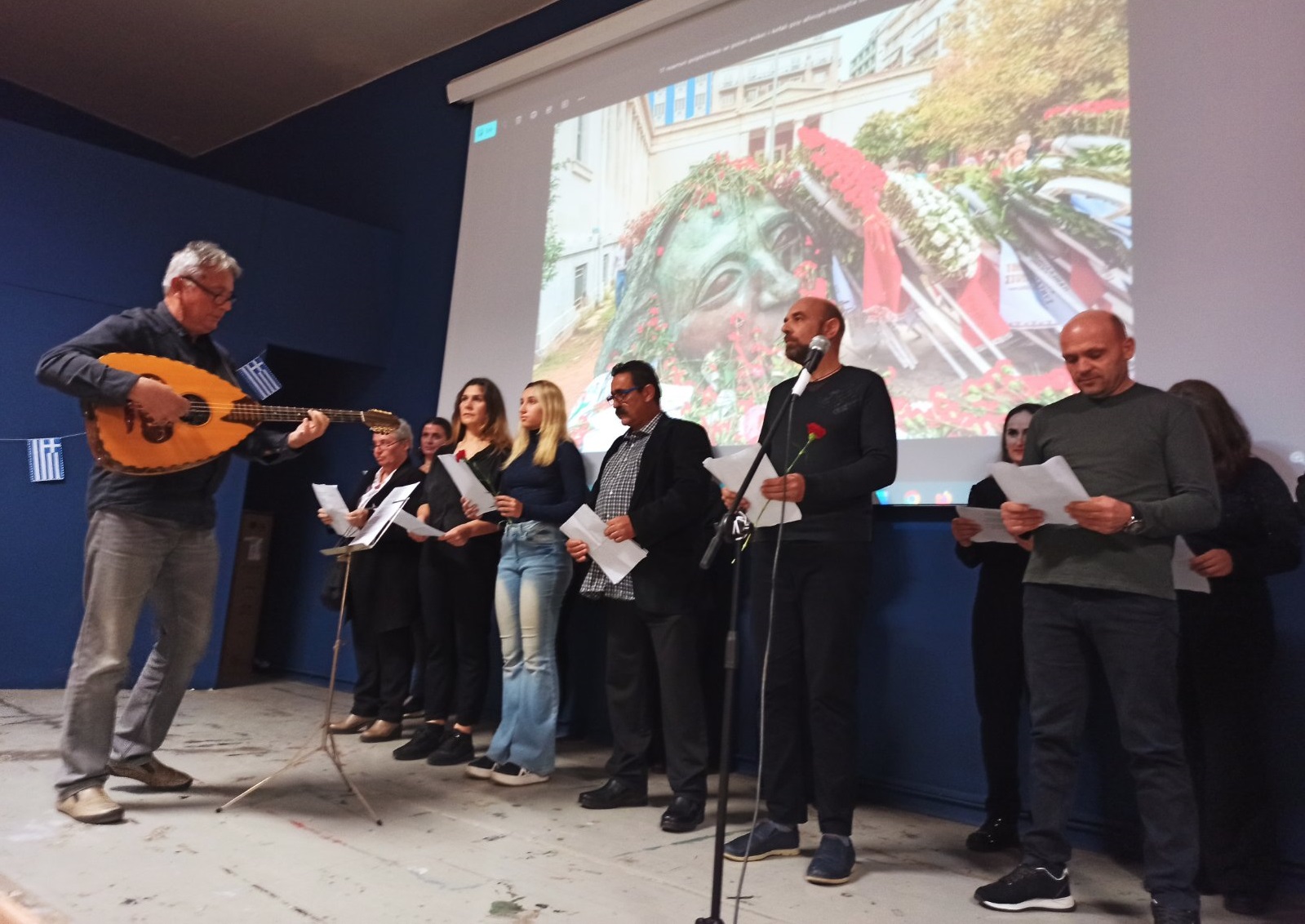 Ο εορτασμός ολοκληρώθηκε με τραγούδια της χορωδίας του Εσπερινού Γενικού Λυκείου, υπό τη διεύθυνση του καθηγητή Θανάση Δραγάνη, μέσα σε συγκίνηση, χειροκροτήματα και αισιοδοξία, με το μήνυμα του Πολυτεχνείου να αντηχεί δυνατά: