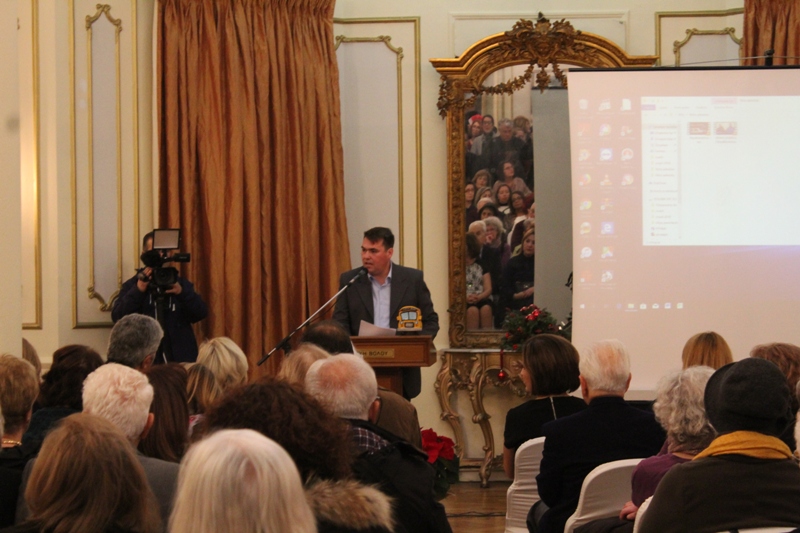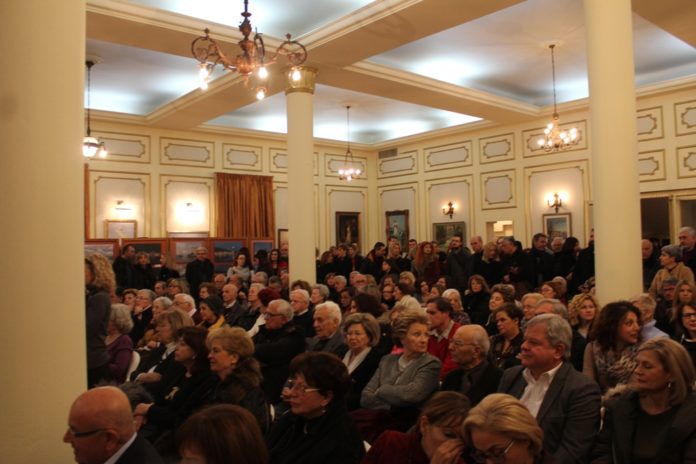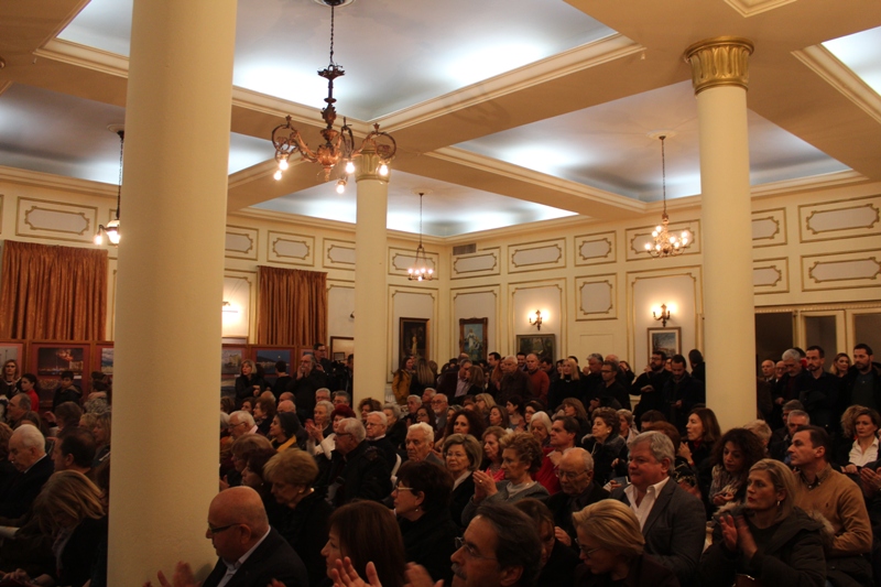 Η αίθουσα της Εξωραϊστικής Λέσχης Βόλου για τα εγκαίνια της έκθεσης με θέμα «Βόλος η πόλη μου», ήταν ασφυκτικά γεμάτη, παρουσία του εκπροσώπου του Μητροπολίτη Δημητριάδος π. Μάξιμου Παπαϊωάννου, της Υφυπουργού Εσωτερικών Μαρίνας Χρυσοβελώνη, του βουλευτή Μαγνησίας Αλ. Μεϊκόπουλου, προέδρων και εκπροσώπων φορέων, δημοτικών και νομαρχιακών συμβούλων, του διευθυντή Δευτεροβάθμιας Εκπαίδευσης, προέδρων και εκπροσώπων συλλογικοτήτων, εκπαιδευτικών, γονέων, μαθητών και άλλων συμπολιτών .