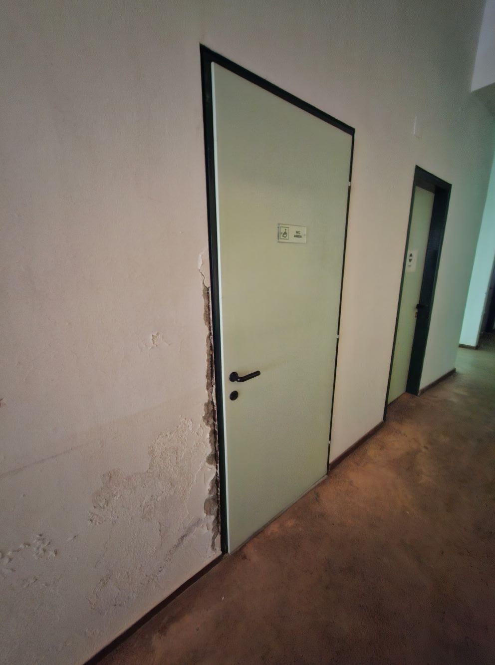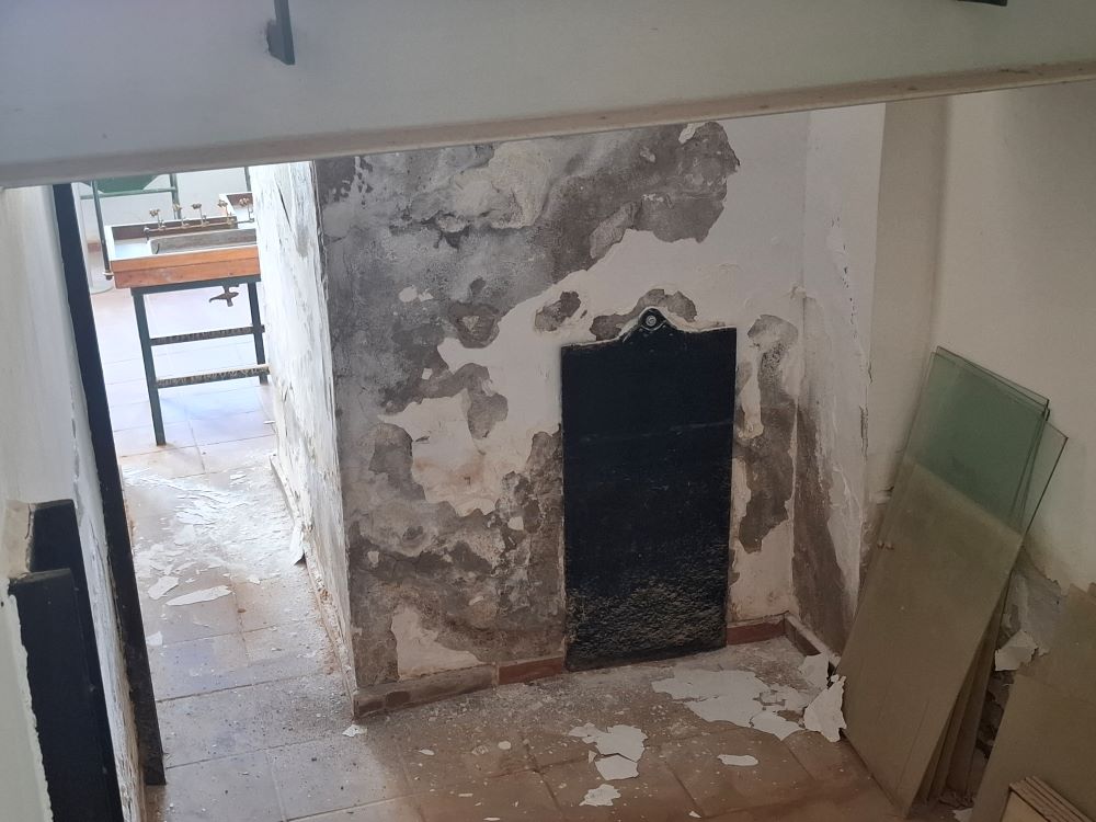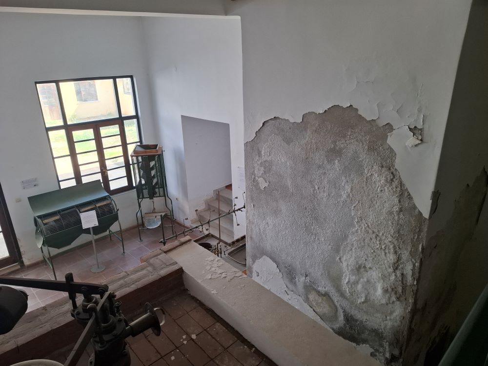 Είναι χαρακτηριστική η περίπτωση χώρου όπου η υγρασία έχει διαβρώσει τόσο πολύ τον τοίχο που φάνηκαν τα σίδερα του οπλισμού τα οποία μάλιστα ήταν αρκετά σκουριασμένα. Επίσης η κάσα πόρτας γραφείου του κύριου κτηρίου κινδυνεύει καθώς έχουν φύγει κομμάτια από τον τοίχο αποτέλεσμα της υγρασίας.