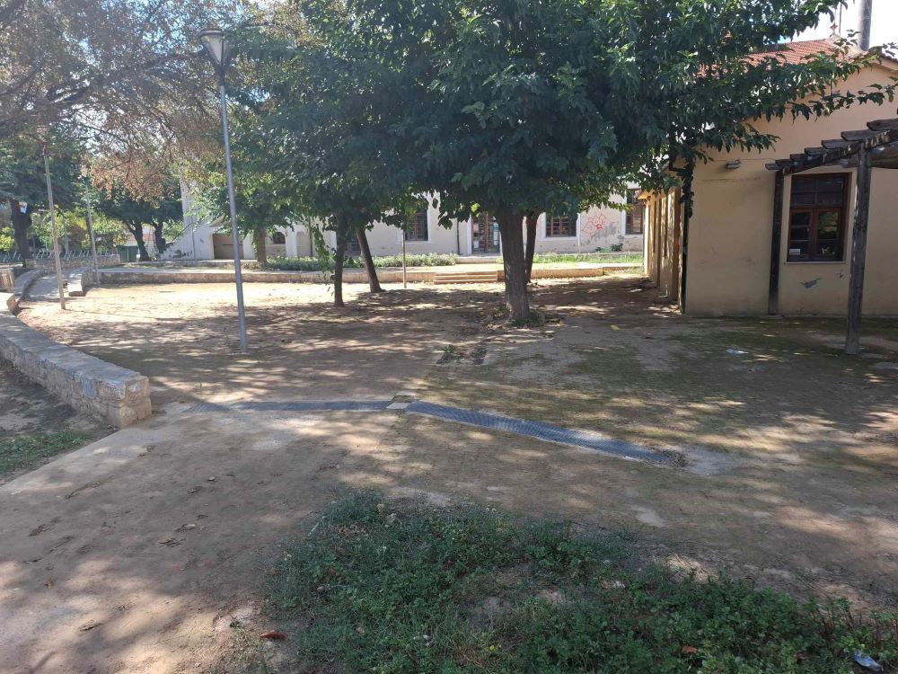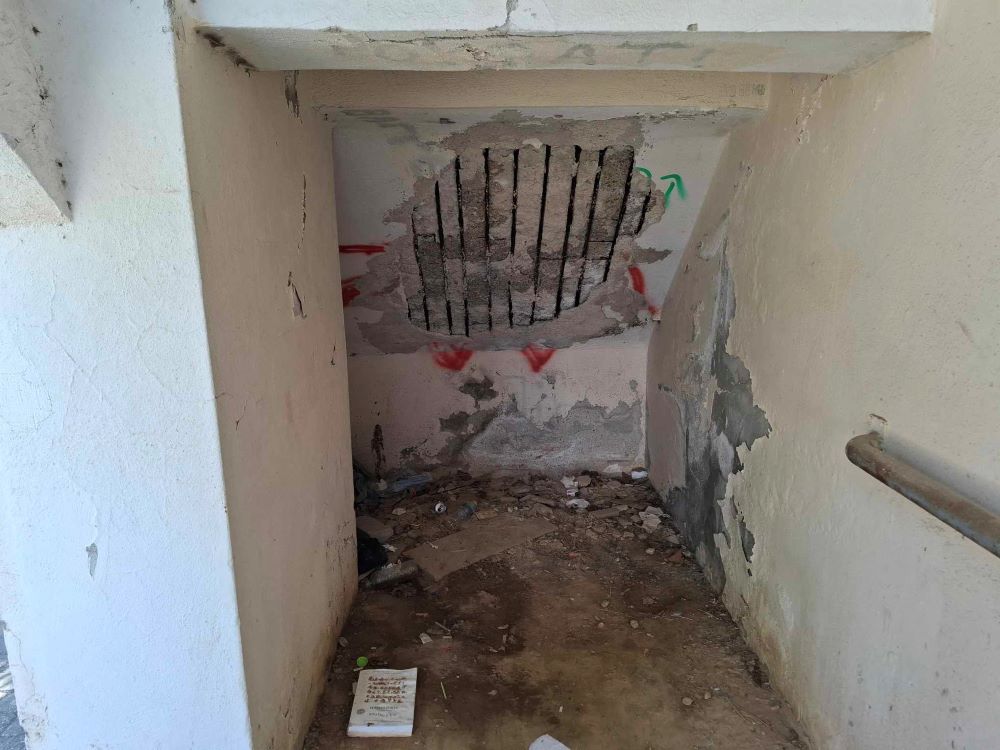 Πεταμένα σκουπίδια γύρω γύρω, λάσπη που με τον καιρό μετατράπηκε σε σκόνη έχει καταλάβει τον αύλειο χώρο ο οποίος φαίνεται να μην έχει καθαριστεί για μεγάλο χρονικό διάστημα, τα γκράφιτι βρομίζουν τους τοίχους, ενώ εμφανίζεται και χαλασμένος εξωτερικός εξοπλισμός κλιματιστικών.