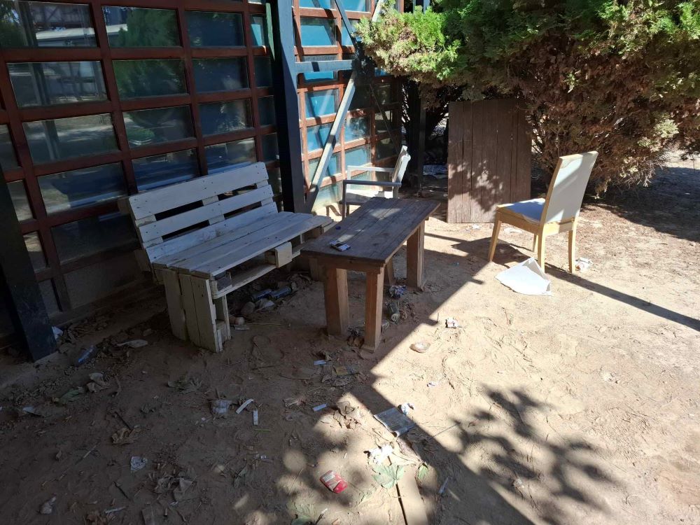Το σκηνικό φέρνει και σε χωματερή, καθώς υπάρχουν καρέκλες και τραπέζια παρατημένα, όπως και άλλα αντικείμενα που κάποτε χρησιμοποιούνταν και πλέον όχι και βρίσκονται εκτεθειμένα στη μανία των καιρικών φαινομένων που αργά ή γρήγορα θα τα καταστρέψει ολοσχερώς.