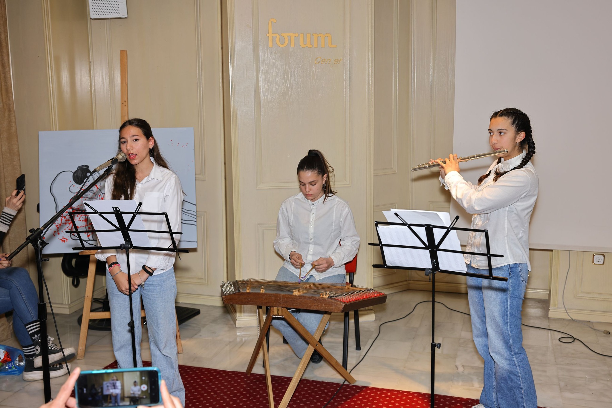 Την εκδήλωση πλαισίωσαν μουσικά με μεγάλη επιτυχία μαθήτριες του Μουσικού σχολείου Βόλου.