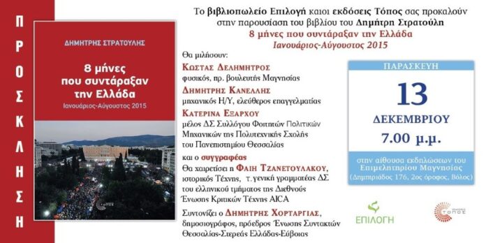 Το βιβλιοπωλείο ΕΠΙΛΟΓΗ (Φτίκας Νικόλαος Α.) και οι εκδόσεις ΤΟΠΟΣ διοργανώνουν εκδήλωση για την παρουσίαση στον Βόλο του βιβλίου του π. υπουργού και βουλευτή Δημήτρη Στρατούλη: