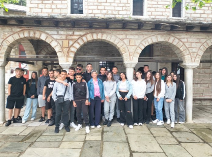 Κάνοντας μια βόλτα μέσα στα όμορφα πέτρινα καντούνια της Μακρινίτσας μαθητές μαθήτριες και συνοδοί εκπαιδευτικοί πέρασαν την πλατεία Μπράνη, στην είσοδο του χωριού, που έχει χαρακτηριστεί ως ιδιαίτερου φυσικού κάλλους, και θαύμασαν τα διώροφα-τριώροφα αρχοντικά με τους χοντρούς πέτρινους τοίχους, τις πέτρινες στέγες και τα πολλά παράθυρα στον πάνω όροφο, χαρακτηριστικό που μαρτυρά την αρχιτεκτονική της οθωμανικής περιόδου, που υπήρξε έντονη στον συγκεκριμένο τόπο.