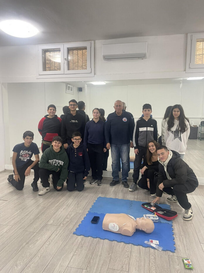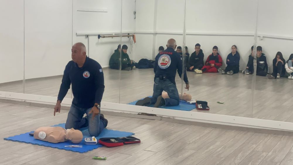 Μαθητές και μαθήτριες του 1ου Γυμνασίου Βόλου είχαν την ευκαιρία να συμμετάσχουν σε μια βιωματική άσκηση πρώτων βοηθειών, με ιδιαίτερη έμφαση στην Καρδιοαναπνευστική Αναζωογόνηση (ΚΑΡΠΑ) και τη σωστή χρήση του εξωτερικού απινιδωτή (AED). Η εκπαίδευση πραγματοποιήθηκε υπό την καθοδήγηση του κ. Βασίλη Ηλιόπουλου επικεφαλής και αντιπρόεδρου της Λέσχης Ειδικών Δυνάμεων Βόλου, και της γυμνάστριας Χρηστίδη Ελένης, υπεύθυνης για το πρόγραμμα πρώτων βοηθειών του σχολείου.