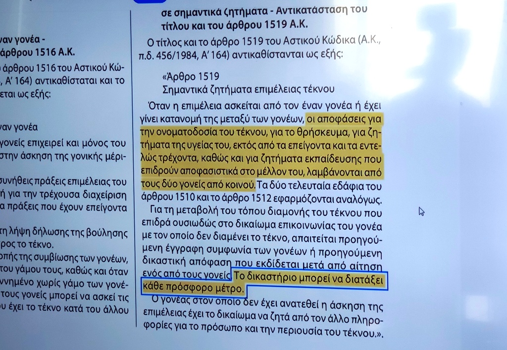 Όπως είπε, ο νόμος 4800/2021 προβλέπει ρητά πως για εκπαιδευτικές αποφάσεις – όπως εγγραφές και μετεγγραφές μαθητών – απαιτείται η συναίνεση και των δύο γονέων, ανεξαρτήτως επιμέλειας.