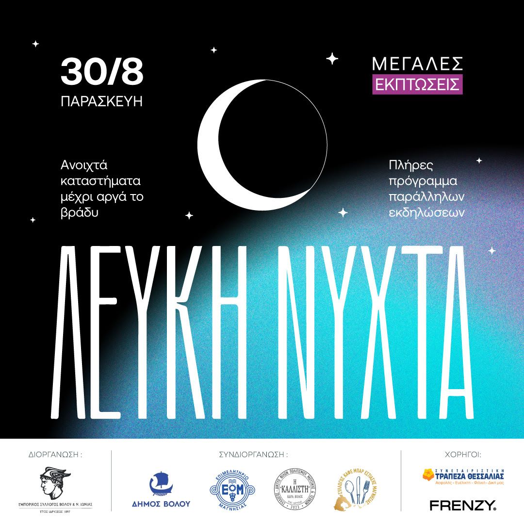 Με μεγάλη απήχηση στην ανάγκη να υπάρξει μια τόνωση της εμπορικής αγοράς, καθώς οι θερινές εκπτώσεις δεν κινήθηκαν φέτος όσο χρειαζόταν για να ορθοποδήσει η αγορά του Βόλου από τις αλλεπάλληλές επιπτώσεις των πλημμυρών του προηγούμενου έτους, στα πλαίσια της φετινής Λευκής Νύχτας 2024, που πραγματοποιήθηκε την Παρασκευή 30 Αυγούστου 2024.