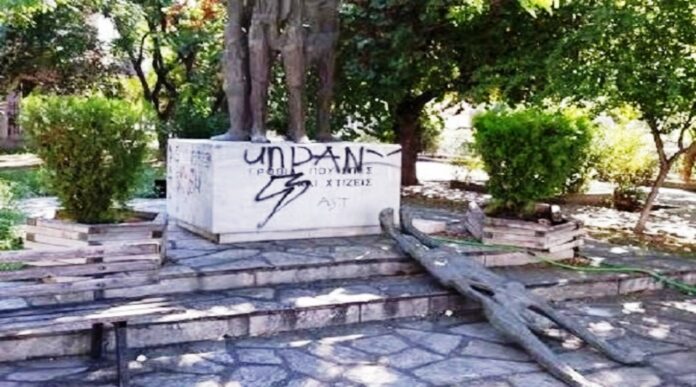 Σύμφωνα με τον πρόεδρο της ΠΕΑΕΑ Θανάση Βογιατζή, στις 8 Αυγούστου 2014 άγνωστοι έριξαν το ένα από τα αγάλματα και έγραψαν συνθήματα στη βάση του μνημείου. Η ΠΕΑΕΑ τότε είχε κάνει παρέμβαση στη Δημοτική Αρχή και ζήτησε αποκατάσταση του μνημείου και, σύμφωνα με τον πρόεδρο, η Δημοτική Αρχή παρέλαβε το πεσμένο άγαλμα και το τοποθέτησε σε αποθήκη.
