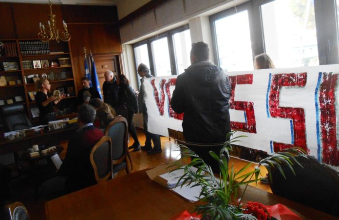 Οι συγκεντρωμένοι κρέμασαν πανό έξω από την Περιφερειακή Ενότητα κατά της καύσης των σκουπιδιών, ενώ η αντιπεριφερειάρχης τους είπε ότι μέχρι σήμερα κάνει ότι είναι στη δικαιοδοσία της και δεσμεύτηκε να τους δώσει τα στοιχεία που ζήτησαν.