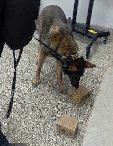 Επιπλέον, τα παιδιά είχαν την ευκαιρία να παρακολουθήσουν τον ειδικά εκπαιδευμένο σκύλο της υπηρεσίας σε επίδειξη εντοπισμού ουσιών.