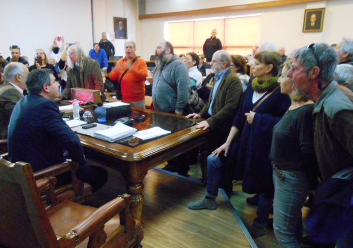 Ο Γιάννης Γερόπουλος της Επιτροπής Αγώνα Πολιτών ζήτησε να οριστεί σήμερα ημερομηνία και ώρα συνεδρίασης του Δημοτικού Συμβουλίου και ο πρόεδρος του απάντησε ότι θα οριστεί την ερχόμενη εβδομάδα και προσκάλεσε τους συγκεντρωμένος με τους επιστημονικούς τους φορείς.