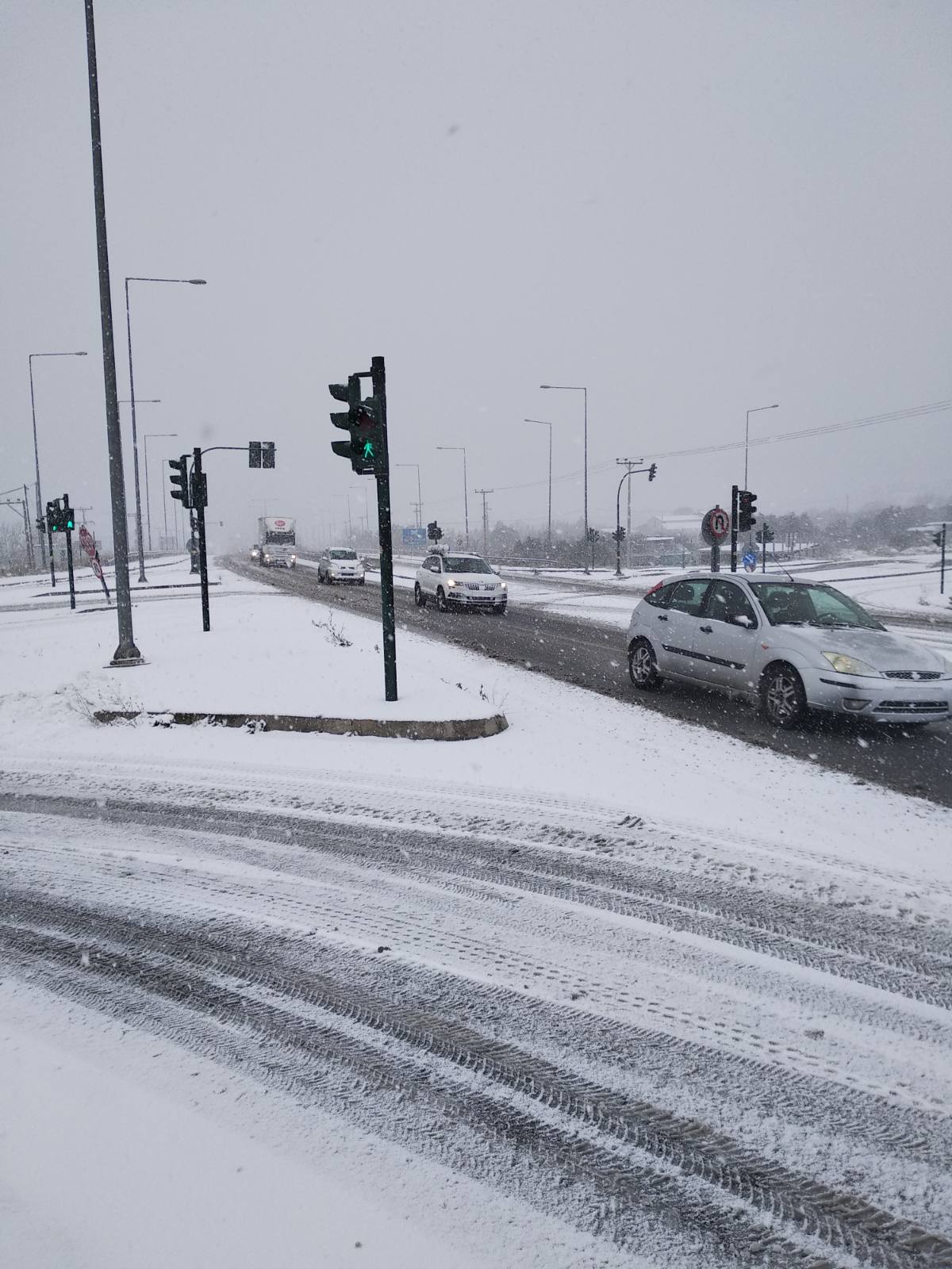Εντάθηκε η χιονόπτωση στο εσωτερικό του πολεοδομικού συγκροτήματος με το χιόνι να πέφτει πυκνό στους δρόμους και τις επιφάνειες σταδιακά να καλύπτονται. Οι δρόμοι παρά ταύτα παραμένουν ανοιχτοί με την κυκλοφορία να διεξάγεται κανονικά, χωρίς να δημιουργούνται, προς το παρόν, προβλήματα. Παρ’ όλα αυτά χρειάζεται προσοχή, καθώς η ολισθηρότητα είναι έντονη και στους δρόμους για τους οδηγούς, αλλά και στα πεζοδρόμια για πεζούς και περαστικούς.