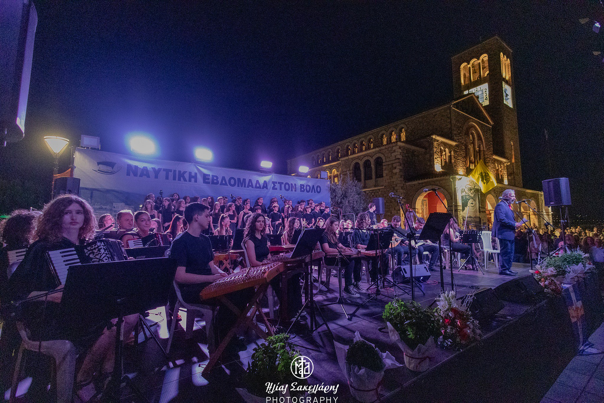 Ακολούθησε μεγάλη συναυλία του Μουσικού Σχολείου Βόλου — ένα αξεπέραστο μουσικό ταξίδι στη θάλασσα και την Κρήτη. Η συναυλία παρουσιάστηκε από το Μουσικό Σύνολο Ορχήστρα Ποικίλης Μουσικής «Νίκος Ξυλούρης» και τη Χορωδία των μαθητών της Α΄ Γυμνασίου του Μουσικού Σχολείου Βόλου. Οι παρευρισκόμενοι είχαν την ευκαιρία να απολαύσουν ανεπανάληπτα τραγούδια που ερμήνευσαν ο Νίκος Ξυλούρης και ο Χαράλαμπος Γαργανουράκης — τραγούδια που μιλούν για τα κύματα, τους καημούς, τις ρίζες και τη λεβεντιά της Κρήτης. Ήχοι και νεανικές φωνές ζωντάνεψαν την παράδοση, τιμώντας το παρελθόν και ενισχύοντας τη συλλογική μνήμη.