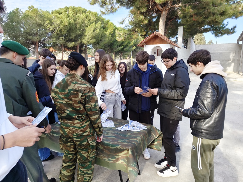 «Μας ενδιαφέρει στο πλαίσιο του επαγγελματικού εξοπλισμού να ενημερώσουμε τους μαθητές και τις μαθήτριες κυρίως της Γ’ Γυμνασίου, για τις στρατιωτικές σχολές, τις δυνατότητες, τον τρόπο ζωής και πως θα εισαχθούν σε αυτές, ώστε όταν έρθει ο καιρός να αποφασίσουν τι θα κάνουν να είναι έτοιμοι και να έχουν όλες τις πληροφορίες, για να μπορέσουν να πάρουν μια απόφαση που θα είναι απόφαση ζωής», επισήμανε ο διευθυντής.
