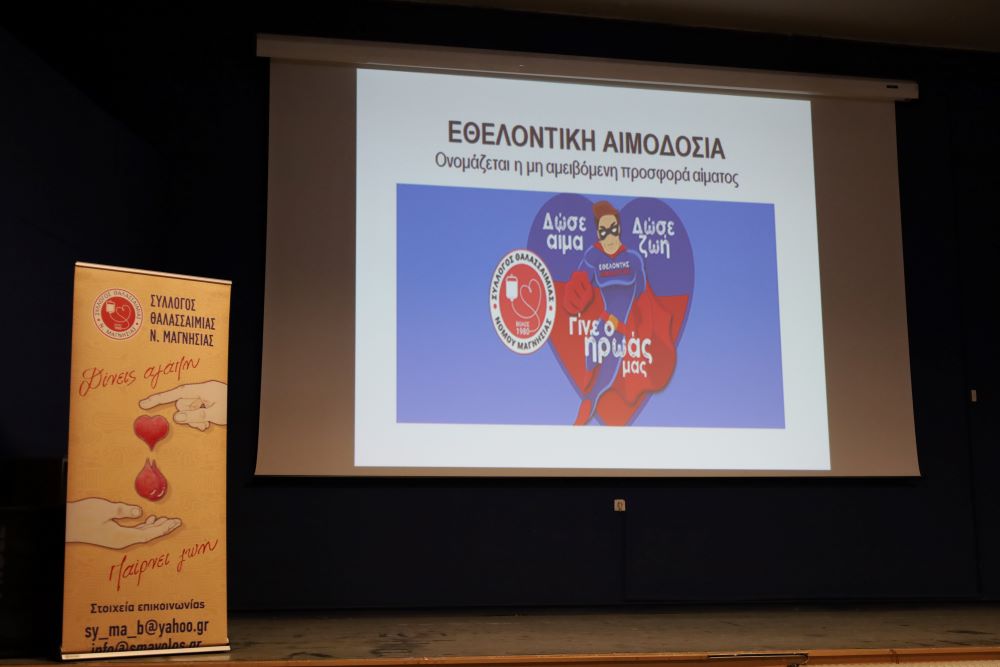 Πραγματοποιήθηκε ενημέρωση της μαθητικής και εκπαιδευτικής κοινότητας για τη θαλασσαιμία (κληρονόμηση, πρόληψη, αντιμετώπιση) και την ανεκτίμητη αξία της εθελοντικής αιμοδοσίας, με σκοπό την ευαισθητοποίηση τους και τη διαμόρφωση ενεργών πολιτών.