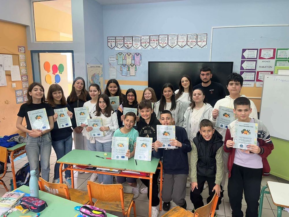 Σε μια πρωτοβουλία που ανέδειξε την αξία της διαγενεακής μάθησης και την έμπρακτη προσέγγιση της βιωσιμότητας, μαθητές της Β’ τάξης του 2ου ΓΕΛ Νέας Ιωνίας Μαγνησίας επισκέφθηκαν την Παρασκευή 2 Μαΐου 2025 το 13ο Δημοτικό Σχολείο Βόλου. Στο πλαίσιο του ευρωπαϊκού προγράμματος ERASMUS+ “Sustainable Alternative Future Essentials” (SAFE), οι μαθητές του λυκείου έγιναν εκπαιδευτικοί, διδάσκοντας σε μαθητές της ΣΤ’ τάξης (τμήματα Στ1 & ΣΤ2) ένα πρωτότυπο workbook που οι ίδιοι δημιούργησαν.