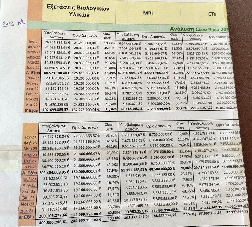 Ο πρόεδρος του Ιατρικού Συλλόγου Μαγνησίας Χρήστος Βενέτης ανέφερε ότι οι αναγκαστικές επιστροφές (clawback), είναι ένα μνημονιακό μέτρο που επιμένει και απειλεί με αφανισμό τα ιδιωτικά εργαστήρια, τα οποία συμβάλλουν στην άμεση πρόσβαση στις δομές υγείας, και στην Α’θμια περίθαλψη. Όπως είπε, μπαίνουν νέες εξετάσεις στον σταθερό προϋπολογισμό του ΕΟΠΥ, πληθυσμός γηράσκει και αυτό σημαίνει περισσότερες ανάγκες στην υγεία ενώ δαπάνες δεν αυξάνονται.