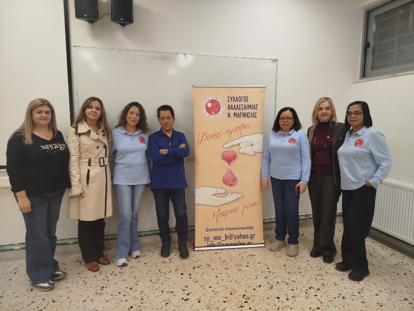 «Πολλές ευχαριστίες επίσης στην κ. Σταμάτη Γεωργία, Ιατρό της Υπηρεσίας Αιμοδοσίας και την κ. Σιδέρη Ευαγγελία –Επισκέπτρια Υγείας, του Αχιλλοπούλειου Νοσοκομείου Βόλου. Επιπλέον, ιδιαίτερες ευχαριστίες στις κυρίες Λουκάκη Δέσποινα (πρόεδρο), Καταρίδου Παναγιώτα (αντιπρόεδρο) και Αϊβαλή Ελένη (ταμία) του Συλλόγου Θαλασσαιμίας Ν. Μαγνησίας, για την παρουσία τους και τα αναμνηστικά δώρα στους εθελοντές αιμοδότες μαθητές».