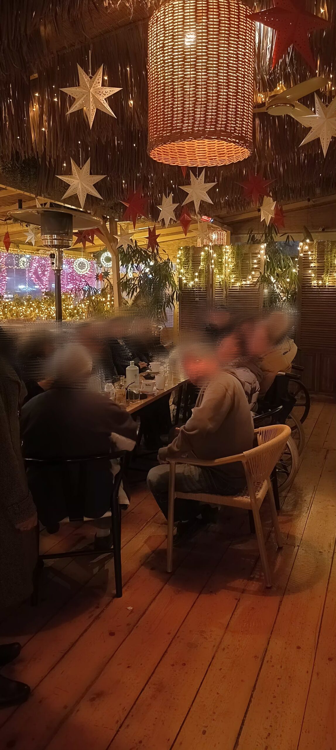 Οι ωφελούμενοι και το προσωπικό της δομής είχαν την ευκαιρία να απολαύσουν στιγμές χαλάρωσης και κοινωνικής επαφής σε καφετέρια στον Άγιο Κωνσταντίνο, σε ένα ζεστό και φιλόξενο περιβάλλον. Η έξοδος συνεχίστηκε με περίπατο στον αστικό ιστό, όπου περιηγήθηκαν στον εορταστικό διάκοσμο της πόλης, αντάλλαξαν χαμόγελα, συνομίλησαν και μοιράστηκαν αυθεντικές στιγμές χαράς και επικοινωνίας.