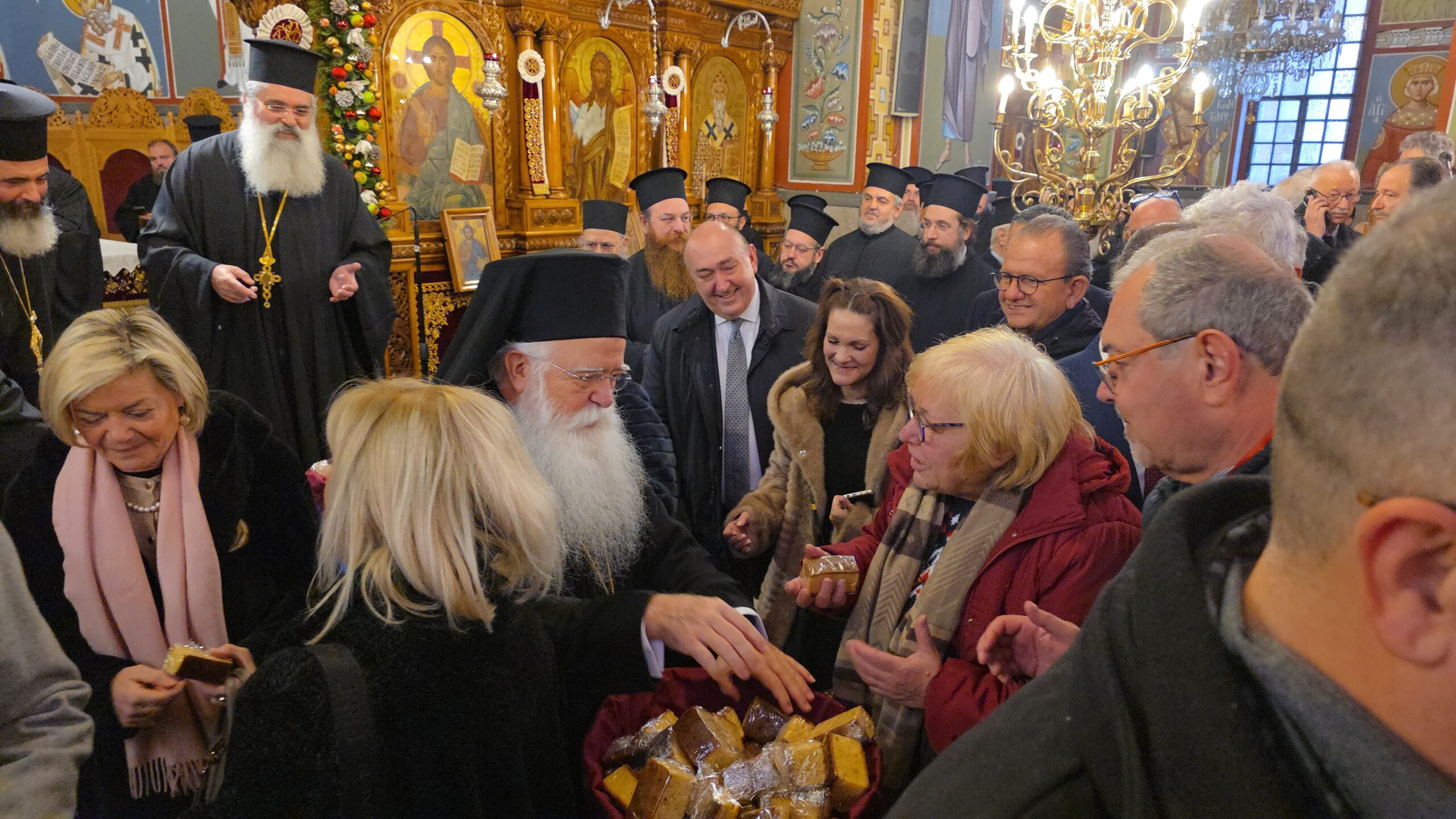 Ο Μητροπολίτης ευλόγησε τη βασιλόπιτα και οι ψάλτες έψαλλαν τα κάλαντα της Πρωτοχρονιάς. Παρόντες ήταν οι βουλευτές κ.κ. Ζέττα Μακρή και Χρήστος Μπουκώρος, η Αντιπεριφερειάρχης Μαγνησίας κ. Άννα Μαρία Παπαδημητρίου, ο Αντιπεριφερειάρχης Ψηφιακής Διακυβέρνησης κ. Γιάννης Αναστασίου, οι Αντιδήμαρχοι κ.κ. Σαββάκης και Αντωνοπούλου, εκπρόσωποι της Αστυνομίας, της Πυροσβεστικής, του Λιμενικού και των Ενόπλων Δυνάμεων, οι πρώην Βουλευτές κ.κ. Λιούπης και Μαραβέγιας, ο πρώην πρόεδρος του Δικηγορικού Συλλόγου Βόλου κ. Χρήστος Στρατηγόπουλος, ο πρόεδρος της Ένωσης Ξενοδόχων κ. Γιώργος Ζαφείρης, ο πρόεδρος του Γεωπονικού Συλλόγου Μαγνησίας κ. Κώστας Λάμπρος, η πρόεδρος του Οδοντιατρικού Συλλόγου Μαγνησίας κ. Τίνα Κλάρα κ.α.